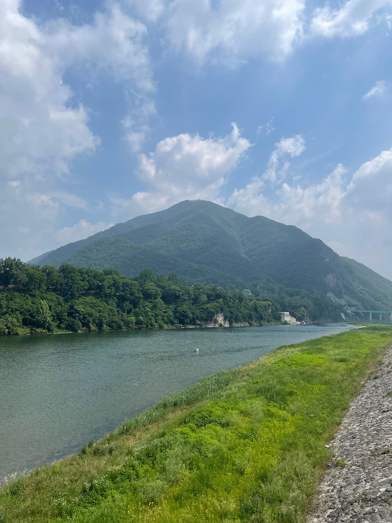 소도시를 오고 가며 가장 큰 존재감을 발휘하는 동강의 줄기는 연두빛~청록~연하늘을 그라데이션으로 빚은 모습이다. 후덥지근한 공기와 강바람이 부딪힐땐 살짝 땀을 식힐 수 있었다. 해가 뉘엿거리는 저녁 즈음에는 노란색~핑크빛까지 곁들여져 무드가 좋은 하루의 마무리를 선사해주었다.