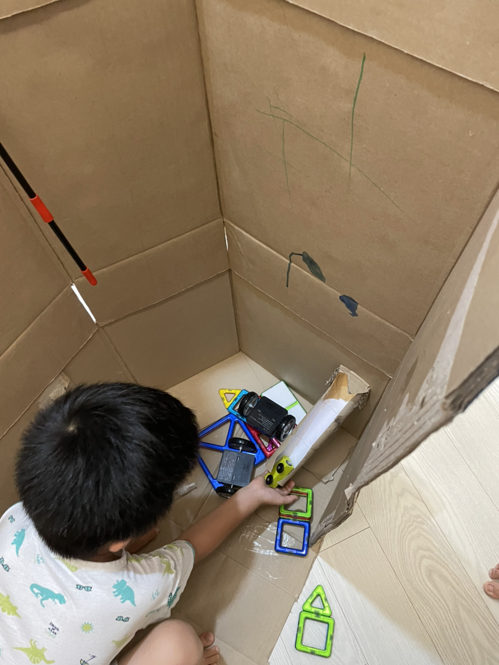 '넘버블럭스 숨바꼭질 큐브'를 만든 후에 보다 큰 공간을 만들어야 할 필요성을 느꼈다. 아이가 상자 속에 들어가는 걸 너무 좋아했다. 자기만의 비밀스러운 공간인 것처럼 아기자기한 물건을 숨겨두고 본인도 들어가서 함께 숨었다.
