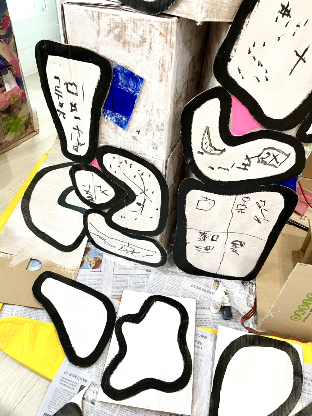 출근 준비를 하려고 새벽에 일어난 남편이 물었다. 나는 출근하는 사람보다 먼저 일어나서 택배 상자를 칠하고 있었다. 전날 밤 잠자리에 누우면서도 일어나고 싶었다. 빨리 작품을 완성하고 싶어서 몸이 근질거렸다. 누가 시킨 일도 아닌데 잠만보 아내가 새벽부터 상자를 잡고 앉아 있으니, 부스스 일어난 남편이 놀랠 수밖에 없었다. 재밌어서,라고 답했다. 나는 몰입의 즐거움 가운데 있었다.