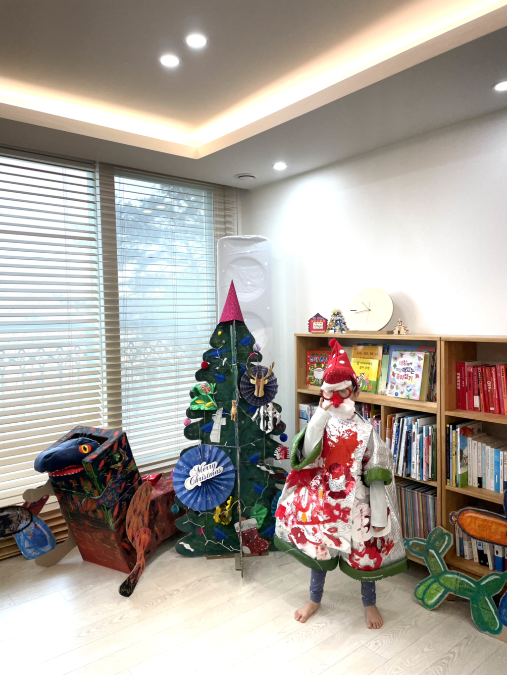 아이와 택배 상자로 사귀어 가는 시간이 좋다. 우리가 사귀는 동안 아이는 나를 미소 짓게도 하고 예술 짓게도 만들었다. 어느 날 아이가 택배 상자를 꺼내 오더니 뽑기 기계를 만든다고 요란하게 움직였다. 내 도움 없이 스스로 만들게 내버려 뒀다. 상자 안에 반짝이는 바닥지도 깔고, 말랑이가 담긴 투명하고 둥근 뽑기 통도 여러 개 넣고, 기계에 동전을 넣을 수 있게 구멍도 뚫느라 분주했다. 아이는 일상을 재밌게 탐구해가고 있었다. 나는 아이로 인해 일상을 예술로 탐구하는 재미에 빠져 갔다. 우리는 인생을 예술적으로 탐험하는 듀오 아티스트이고, 우리의 작품은 앞으로도 원더풀 할 거다.