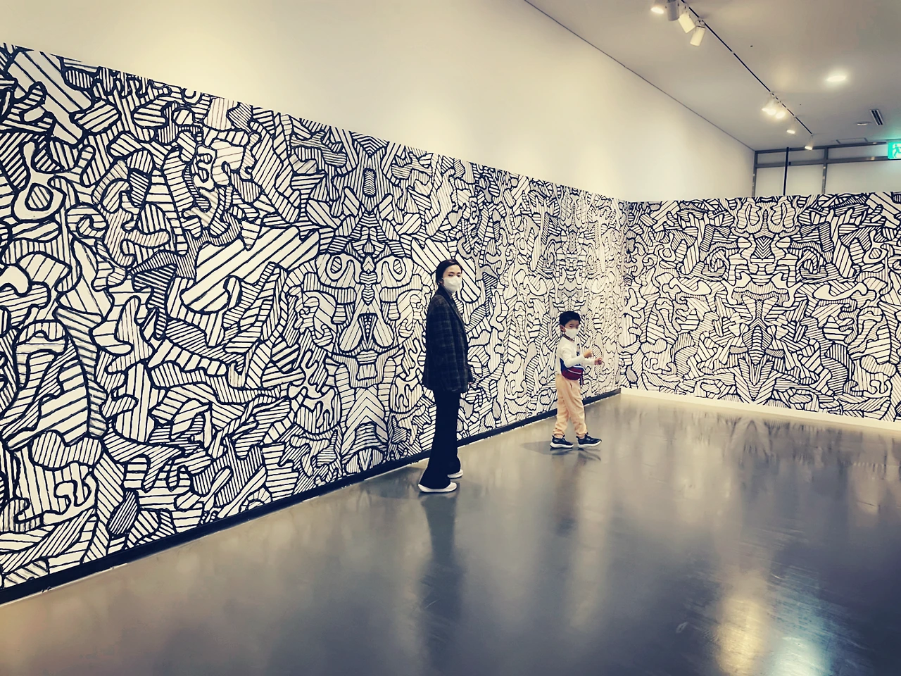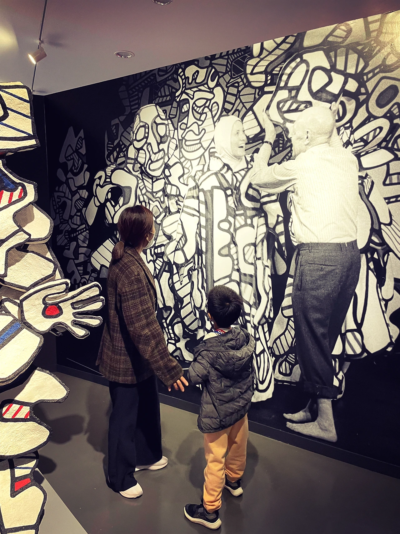 얼리버드 티켓을 들고 간 전시는 흥미로웠다. 뒤뷔페 작품만 모아둔 전시를 보러 간 건 나도 처음이었다. 마지막 구역까지 잘 관람하고 나가려는데, 멀쩡했던 아이가 갑자기 흥, 흥, 거리며 삐쳤다. 그곳에는 작가 작품을 어린이용 옷으로 제작해 놓은 것이 있었다. 어떤 아이들이 그걸 입고 사진을 찍고 있었다. 우리 아이가 입어봐도 되는지 물었더니 미술관에서 주관하는 어린이 미술 교실 수강생만 입을 수 있는 것이라고 했다. 그 얘길 듣고 옆을 보니 삼삼오오 모인 유아들이 무언가를 하고 있었다. 내 아이가 입술을 오리만큼 내밀고 기분 상한 티를 팍팍 냈다.