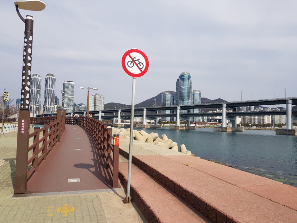 광안리 해변가에서의 1코스는 '시작' 지점이다. 오전 10시에 도착한 이 곳에서 젊음과 노련미를 동시에 느낄 수 있었다. 백발이신 할아버지, 깔끔한 코트를 입은 20대 여성, 선글라스를 끼고 러닝 중인 금발의 외국인까지, 축제 같은 이 곳에 내가 지금 속해 있음을 감사하게 느끼기 시작했다. 너도나도 각자 다른 목적을 가지고 이 곳에 온다. 사투리가 표준말인 이 곳에서 서울말을 쓰는 어색한 대학생들은 이 추운 늦겨울에도 양말을 벗고 살며시 차가운 물에 의지해본다. 자유롭게 모래밭에 앉아서, 전혀 처음 온 것처럼 보이지 않은 책을 보는 외국인도 보인다. 암묵적인 축제를 체험하며 나는 걷고 또 걸었다.