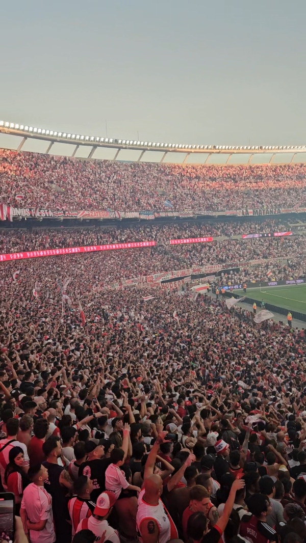 엘 모누멘탈에 입장해 착석한다. 아르헨티나에서 가장 큰 이 경기장은 이미 리버플레이트 팬들의 텐션으로 꽉 차 있다. 보통 클럽 경기를 보러 오면 원정 팬들의 모습도 보이기 마련인데 여긴 정말 찾기 힘들다. 심지어 골대 뒤쪽에 위치한 응원석은 모두 스탠딩석이라 8만 5천 명보다 더 많은 사람이 들어올 수도 있을 것 같다. 그들의 응원 소리는 지금까지 어느 경기장에서 본 것보다 인상적이었다. 정말 인생을 축구에 모두 던져버린 사람들만 모인 것인지 입이 다물어지지 않는다. 일반적으로 세계 어디서든 클럽 경기를 보면 응원가는 주로 응원석에서 서포터즈들이 주도하고 부르는데, 유럽처럼 여긴 그런 구분이 없다. 이미 조부모부터 최소 3대에 걸쳐 한 팀의 팬이고 역사는 길기 때문이다. 유럽 축구장과의 차이점은 관중이 더 열정적이라는 것. 이들이 이 클럽을 사랑하면서도 나는 동시에 두려움을 느꼈는데, 아마도 이는 아르헨티나 축구 선수들이 아주 거칠고 공격적인 축구 플레이 성향을 가진 이유라 생각한다. 상대 선수들에 대한 매너보다 본인의 승리에 대한 열망, 포기하지 않는 모습 등을 팬에게 보여줘야 하기 때문이다. 이 관중들을 보면 정말 그런 생각이 들 수밖에 없다. 지는 것은 어쩔 수 없지만 무기력한 모습을 보인다면 정말 살인이 날 수도 있을 것 같은 분위기다. 경기장 내에는 코를 찌르는 담배와 마리화나 냄새가 진동한다. 아주 곳곳에서 연기가 피어오른다. 의학적 용도 외에는 불법으로 알고 있는데 그것 참 희한할 노릇이다. 스페인에서도 종종 마리화나 냄새를 맡을 수 있었는데, 스페인어권 국가들은 어느 정도 풀어주는 모습인 듯 하다. 생각해보니 예전에 호주에서 길거리에서 마리화나 파는 사람들은 죄다 아르헨티나 사람들이었던 기억이 떠오른다. 아이들도 많은데 이런 흡연에 대해 딱히 부정적인 인식은 아닌 듯하다. 2000년대 초반 우리나라처럼 말이다.