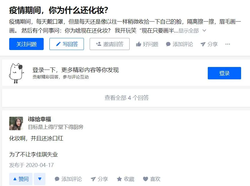 바이두 지식인 知乎에서 발췌한 코로나 시대에 왜 화장을 하냐는 질문에 대한 답들