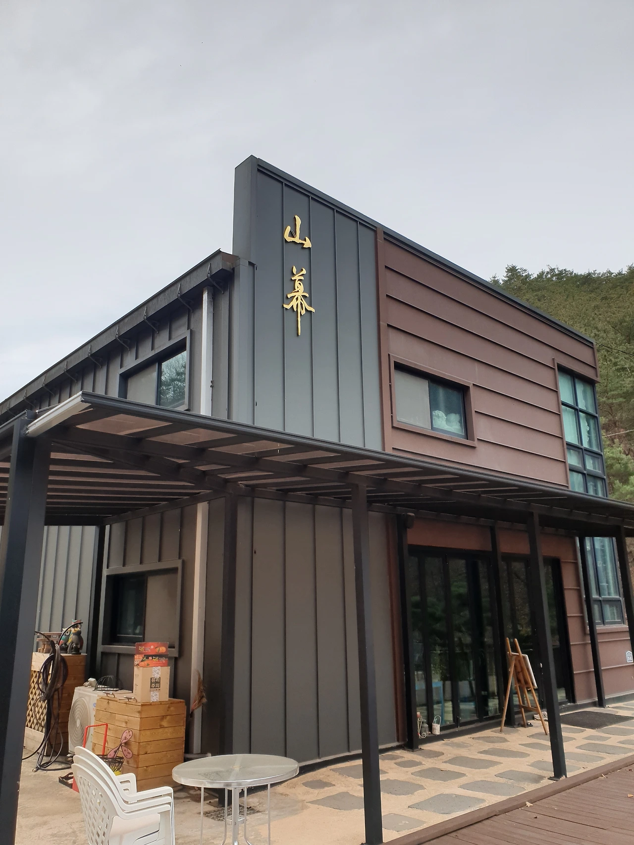 산막 와이너리는 충북 영동군 영동읍 산막골길에 위치해 있다. 현대적인 느낌의 건물과 겨울이라 물은 없지만 마당에 위치한 풀장이 마치 별장에 온 듯한 느낌을 주었다.