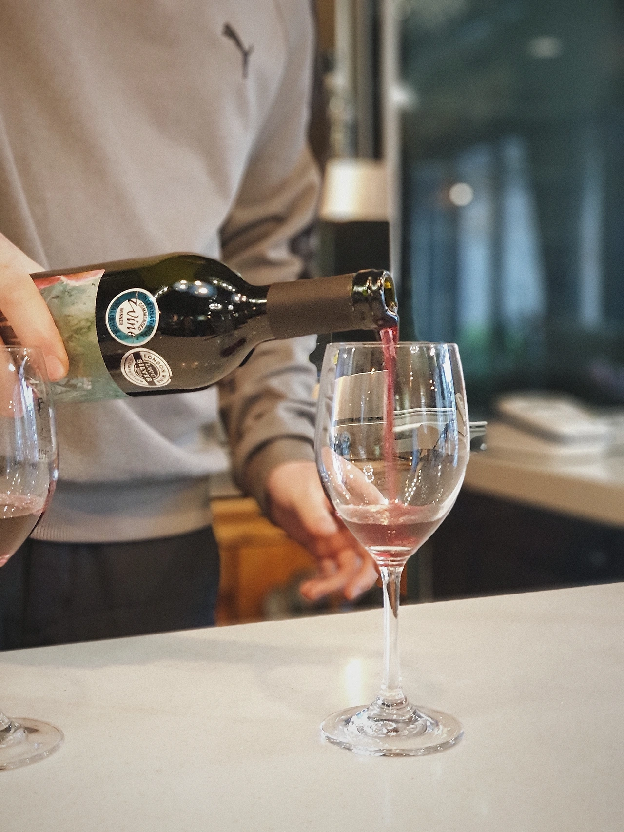 라라는 작년에 처음 출시된, 산막 와이너리의 첫 번째이자 유일한 화이트 와인이다. 사실 이 와인이 너무 궁금해서 산막 와이너리에 방문하게 된 것이라고 해도 과언이 아니다. 청수라는 국산 청포도 품종 100%로 만들어진 이 화이트 와인은, 마시기도 전에 코에서 먼저 반응을 할 수밖에 없다. 이미 완판이 되어, 테이스팅 룸에도 오픈한 지 시간이 지난 것밖에 없어 향이 많이 날아간 것을 시음했는 데도 불구하고, 향이 엄청 생생하고 화사해서 놀라웠다. 마치 덴버 풍선껌 같고 하얀 꽃과 청포도 향이 아득하게 다가온달까. 딱 봄이 연상되는 풍미였다. 알코올 도수는 12도로, 해산물 요리와의 페어링을 권장하고 있다.