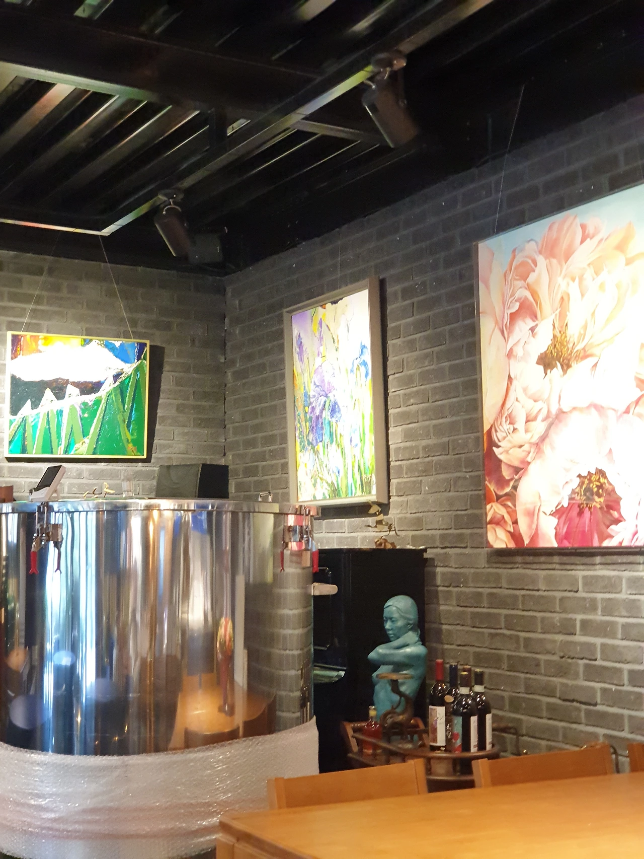 산막 와이너리 테이스팅 룸에 들어서면 곳곳에 예술 작품이 있는 것을 확인할 수 있는데, 이는 '예술로 빚은 와인'이라는 산막 와이너리의 철학과도 맞닿아있다. 대표 중 한 분인 안성분님은 서양화가로도 활동을 하고 계시며, 직접 그린 그림들을 와인 레이블에 넣고 그 그림의 이름으로 와인의 이름을 붙인다고 한다. 이러한 요소들이 산막 와이너리의 차별화된 아이덴티티를 만들어 주는 게 아닌가 싶었다.