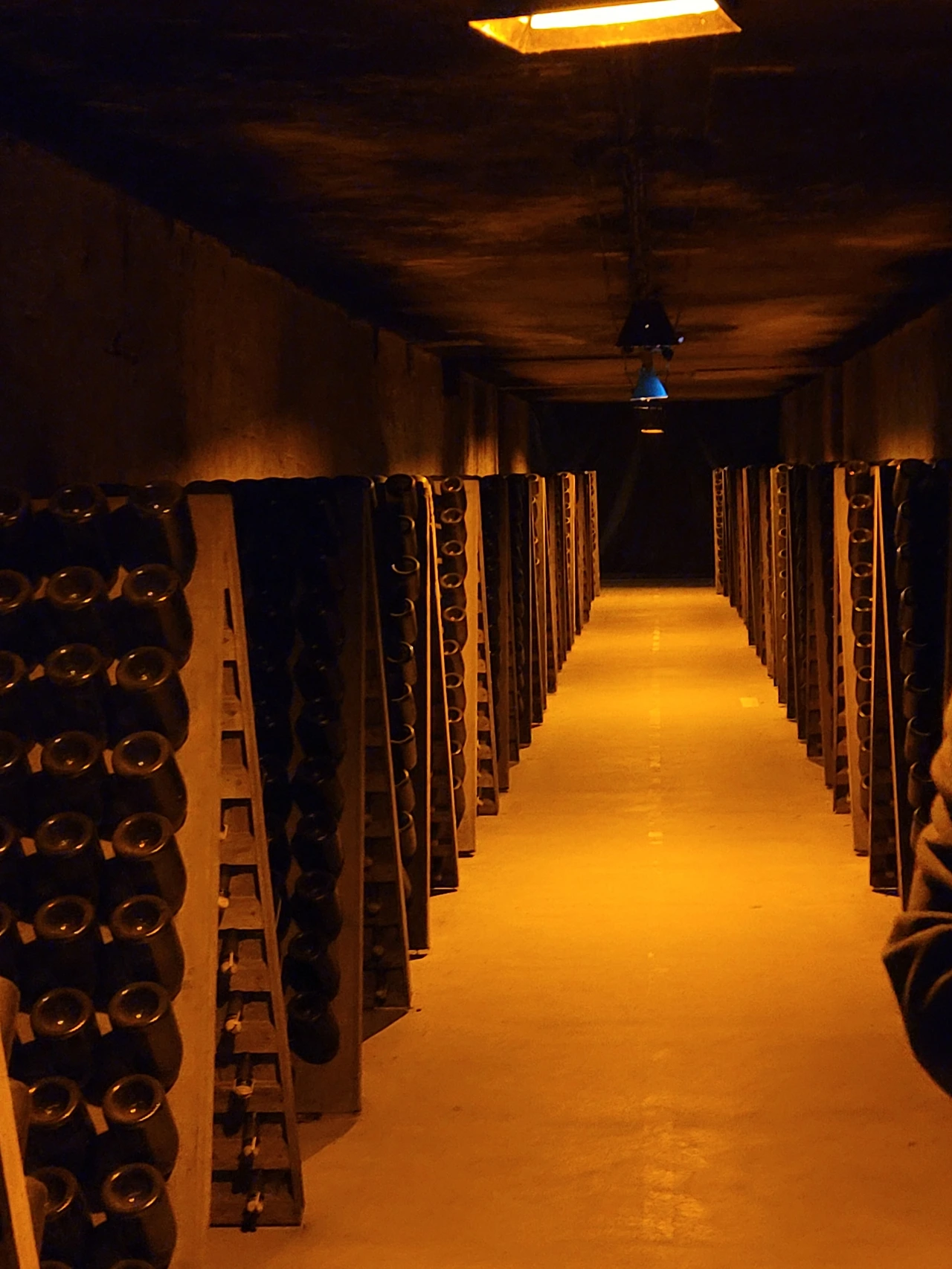 투어의 내용은 오전에 들었던 뵈브 클리코와 크게 차이가 있지는 않았다. 샴페인 주요 포도 품종, 샴페인 전통 제조 방식 등에 대해 설명을 들었고, 뵈브 클리코에서 보았던 리들링 테이블도 똑같이 확인했다. 다만, 실제로 병목에 침전물이 모여있는 것을 확인해 본 것은 흥미로웠다.
