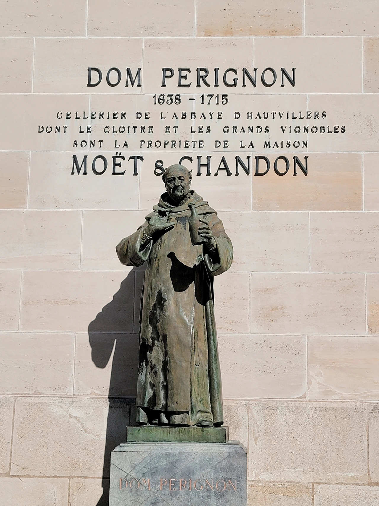 샴페인 하우스를 나서는 길에 돔 페리뇽 수도사와 마주했다. 샴페인이 병 안에서 발효되는 과정에서 코르크가 저절로 열려 터지는 현상을 발견하고 해결한 인물이며, 실제 이 분의 이름을 따서 지금의 돔 페리뇽 샴페인이 있게 되었다고 한다.