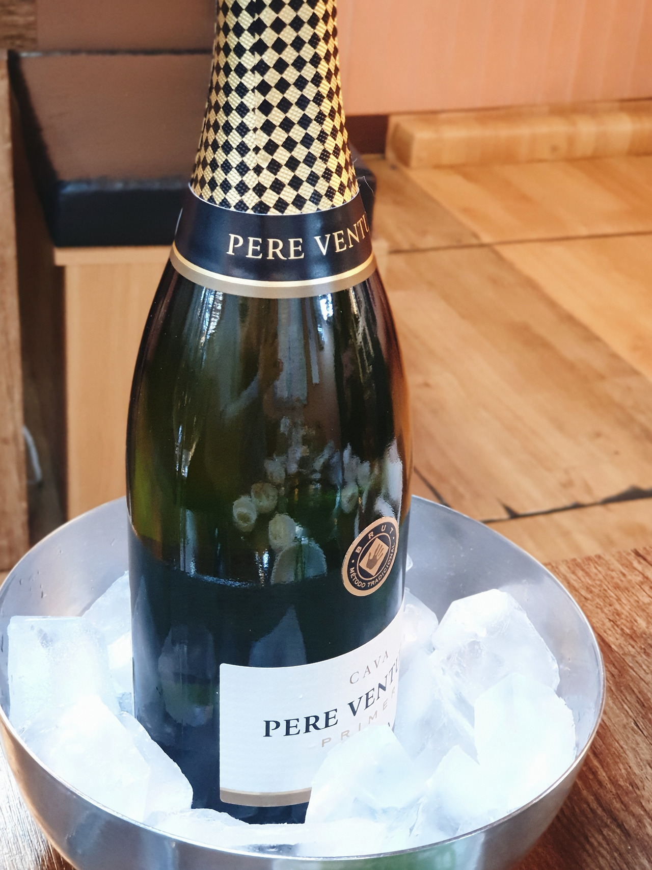 식전주로 선택한 스페인의 스파클링 와인인 까바. 이마트 소믈리에분이 가격이 잘못 들어왔다며 (너무 싸게 잘못 책정되었다 한다) 강력 추천을 해주신 2만 원도 안 되는 스파클링 와인이다. 샴페인을 마시면 좋겠지만, 그건 너무 비싸니까 가성비가 좋은 스페인 까바로 목을 축인다.