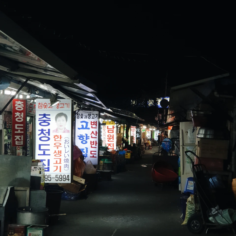 집에서 한 시간 반도 더 걸리는 마장동을 내 평생 오게 될 줄이야. 마장동은 첫 모습부터 굉장한 아우라를 뿜었다. 무엇보다 먹자골목 전체를 뒤덮고 있는 소고기 축산의 냄새가 코를 자극했다. 그리고 골목을 가득 일렬로 채우고 있는 간판들의 포스는 이 곳이 한국 소고기의 성지임을 실감하게 했다.