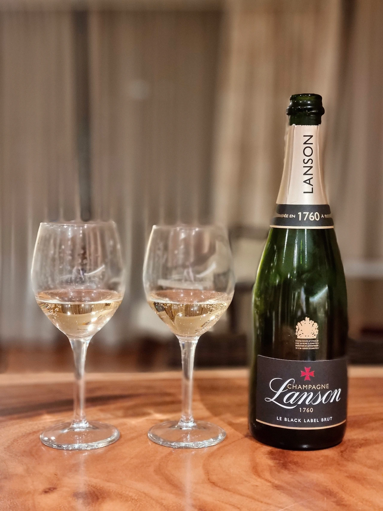 랑송 르 블랙 라벨 브뤼 샴페인 N.V 랑송 샴페인 하우스는 1760년에 세워진 오래된 샴페인 하우스 중 한 곳이다. 랑송 블랙 라벨은 랑송의 수많은 샴페인 중에서도 가장 시그니처 뀌베라고 한다. 피노 누아 50%, 샤도네이 35%, 피노 뮈니에 15%가 블렌딩 된 샴페인이다.