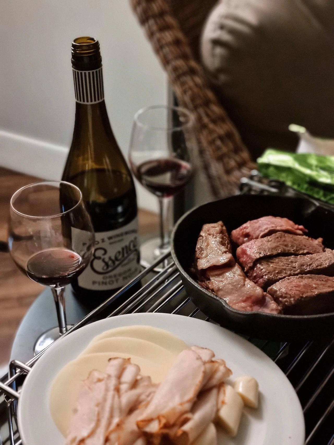 스테이크와 먹는 에이투지 와인 웍스의 더 에센스 오브 오레곤 피노 누아