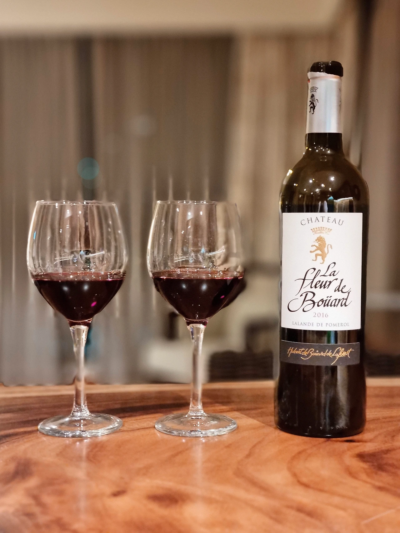 샤또 라 플뢰르 드 부야르는 보르도의 우안에 위치해 있으며, 이곳의 토양은 점토, 자갈, 모래 등 다양한 토양으로 이루어져 있다. 주요 재배 품종은 토양 환경에 적합한 메를로 80%, 까베르네 프랑 15%, 까베르네 쇼비뇽 5%로 이루어져 있는데, 과실 향이 풍부한 메를로로 굉장히 부드럽고 쥬이시한 와인들이 생산된다. 샤또 라 플뢰르 드 부야르 라랑드 포므롤 2016 빈티지는 메를로 85%, 까베르네 프랑 12%, 까베르네 쇼비뇽 3%로 블렌딩 되었다. 보르도 특징인 참나무 오크향, 두부 같은 식물성 단백질과 간장의 풍미가 느껴진다. 양고기랑 먹으니 고기의 지방 부분과 반응하며, 딸기 요거트 같은 뉘앙스가 올라온다. 몹시 스파이시한 편. 하와이 코스트코에서 구매.