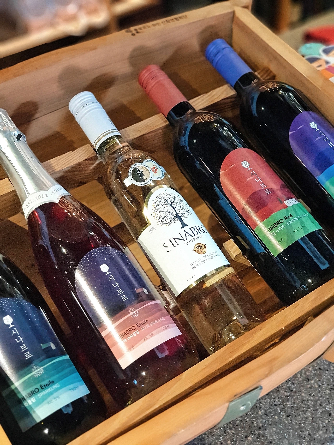 우리는 저 중 네 가지 와인을 마셔보았고, 그중 가장 인상 깊었던 스파클링 와인과 청수 화이트 와인을 구매해 돌아왔다.