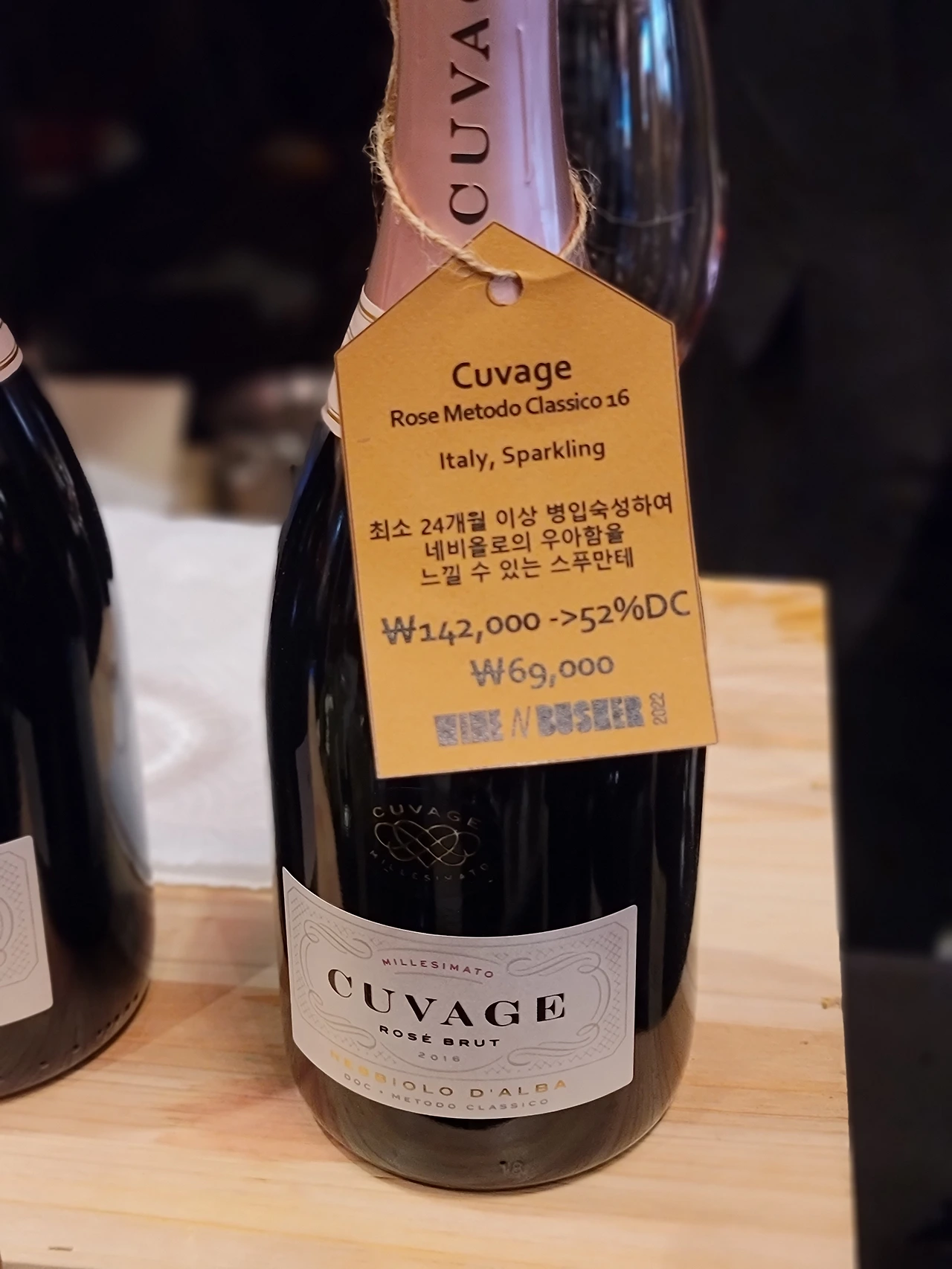 향은 나와 남편이 좋아하는 적포도 비율 높은 여타 넌빈 샴페인처럼 빵 굽는 이스트 향이 느껴지고, 맛에서는 산뜻하고 약간의 달큼함이 느껴지는 과일의 느낌이 난다. 도사주는 8g. 오픈되어 있던 시간이 긴지, 기포는 즐길 수가 없어 아쉬웠다. 와인 페어에서 49,000원에 판매를 하고 있었는데 가격 대비 이 정도 퀄리티의 샴페인은 흔치 않을 듯하다. 정말 살까 말까 엄청 고민했는데, 데려오지는 않았다. 살짝 후회되기도. 무엇보다 품종 공부하기 너무 좋을 것 같은데, 그 부분이 참 아쉽다.
