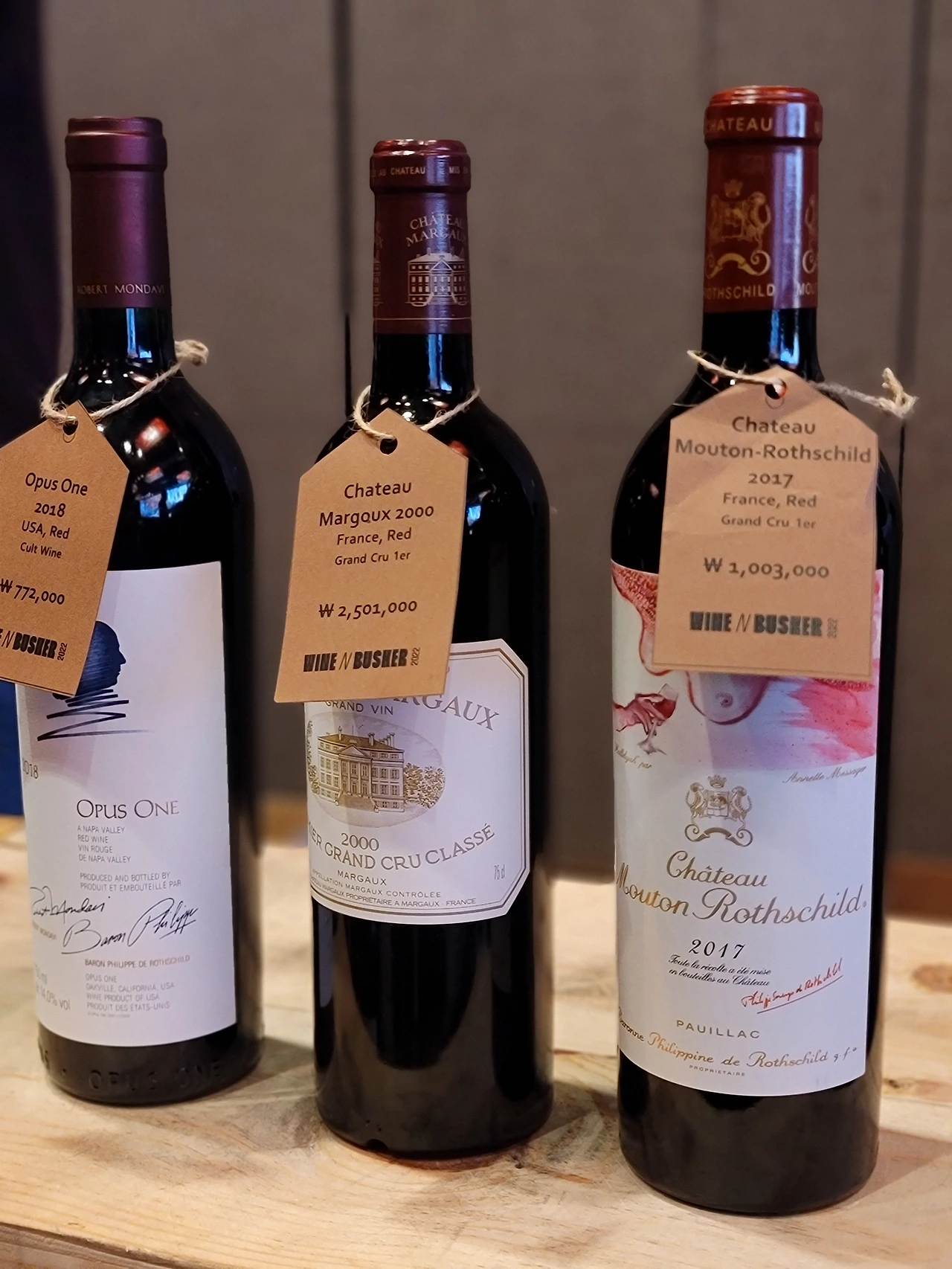 5대 샤또와 오퍼스원. 이것도 시음 가능하면 좋으련만.