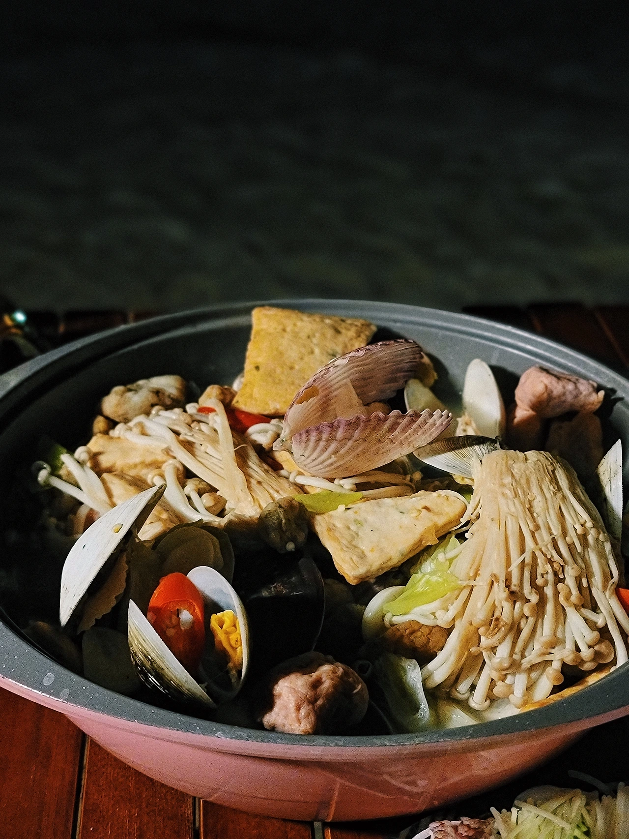 비누향, 암술과 수술이 튀어나온 녹진한 꽃 향, 오크 터치된 살구 맛, 열대과일 향이 느껴진다. 그리고 미네랄리티가 훌륭한데, 그런 탓에 구운 관자, 구운 칼라마리(오징어 튀김)와의 페어링을 권장하고 있다. 우리는 가을밤에 추운 날씨를 고려해서 모둠 조개탕을 끓여 페어링을 했다. 조개의 미네랄리티와 와인의 미네랄리티가 정말 잘 어우러졌다. 조개탕과 함께 페어링 할 와인으로는 미국이나 프랑스 샤도네이 중 미네랄리티가 있는 화이트를 추천!