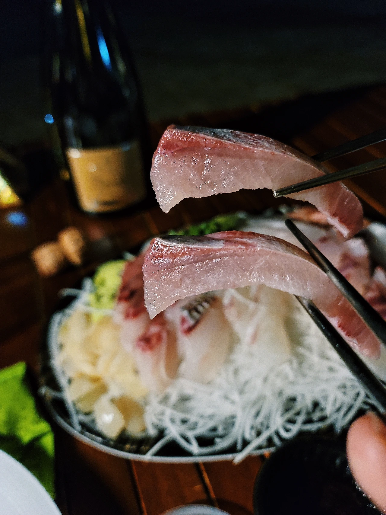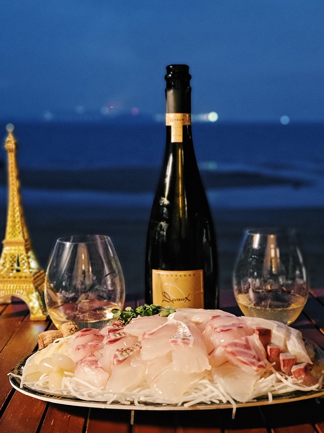 꿀과 사과를 꿀떡꿀떡 먹는 느낌. 5년 숙성의 느낌이 꿀 뉘앙스로 나오는 듯하다. 피니쉬에는 레몬과 라임의 청량함과 산미를 느낄 수 있다. 깔끔한 느낌 덕에 붉은 생선보다는 흰 살 생선이랑 잘 어울리는 느낌. 모둠회에 샴페인은 항상 시작으로 너무 좋은 조합이다.