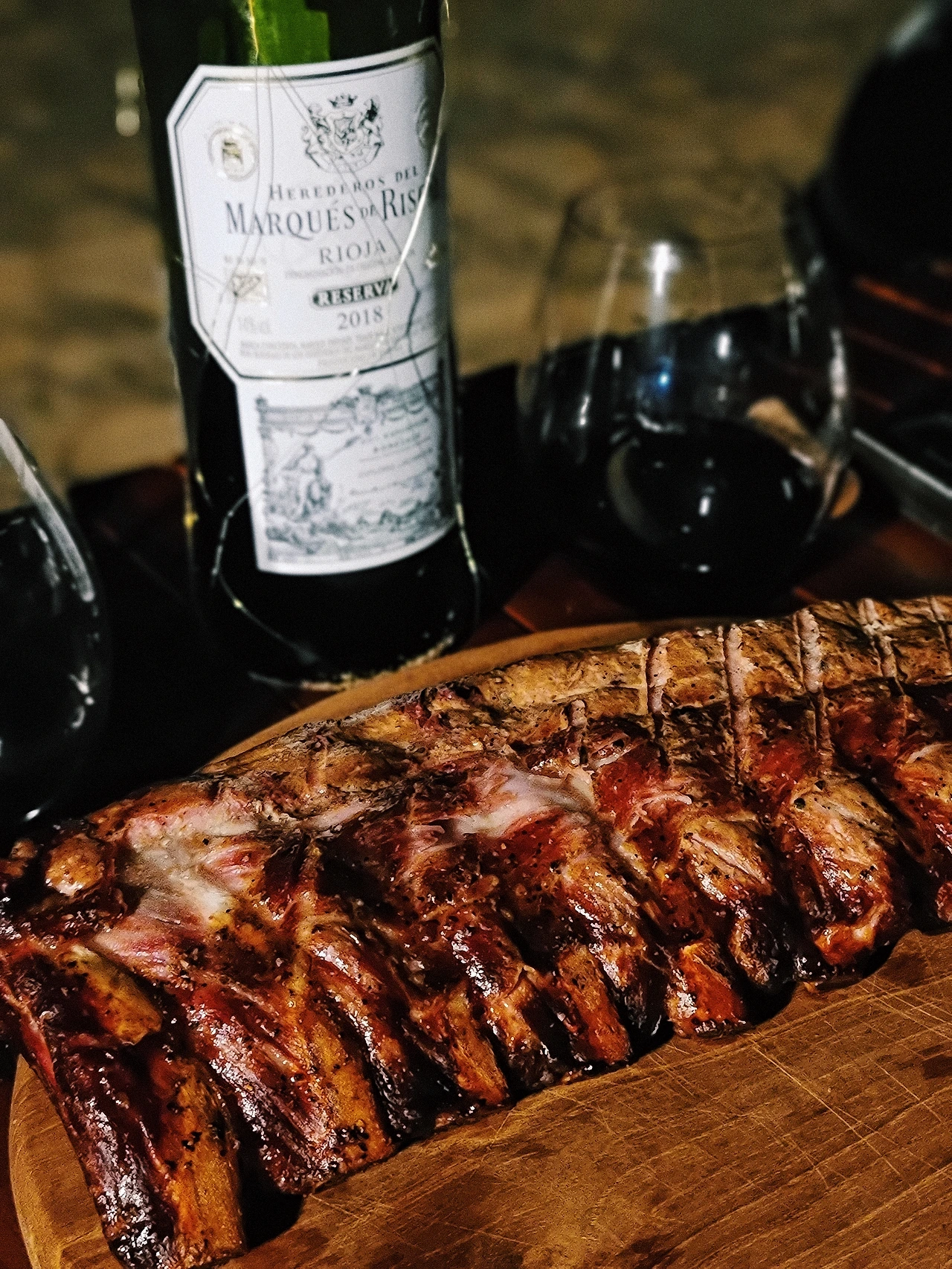 훈제 등갈비에 후추 대신 스페인 리오하 레드 와인으로 시즈닝!