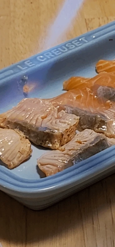 토치로 초벌해서 먹는 훈제연어와 체르바로 델라 살라의 조합은, 천국!