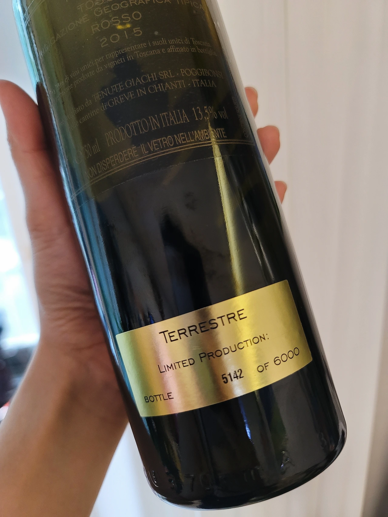 테누타 토르시아노는 1720년에 세워진, 무려 13세대를 지나 전해져 오는 토스카나 지역의 역사적인 와이너리다. 방문객에게 굉장히 친절하기로도 알려진 와이너리인데, 친구 역시 이탈리아에서 토르시아노 와이너리를 방문해서 이 와인을 사 왔다. 이 와인은 방문해서만 살 수 있는, 일종의 gift 같은 와인으로 매년 6000병만 생산한다고 한다. 우리가 마신 와인은 그중 5142번째 병이었다.