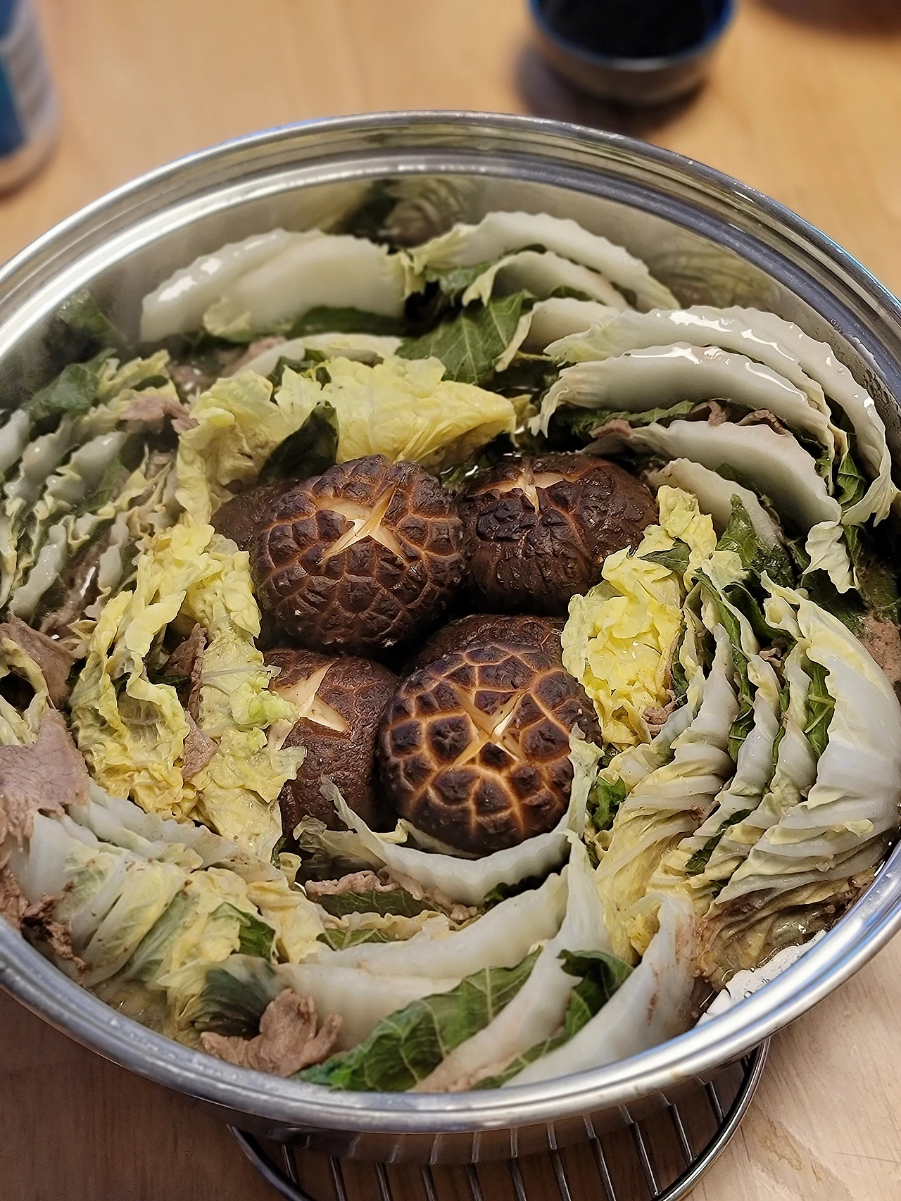 마고 답게 장미 향이 향기롭다. 간장향, 쿰쿰한 버섯향, 파프리카의 스파이시한 향이 느껴진다. 전체적으로는 두부와 표고버섯 넣은 된장찌개 같이 부드럽고 푸근한 느낌이라서, 표고버섯과 소고기가 들어간, 간장을 베이스로 한 밀푀유 나베와 잘 어울렸다.
