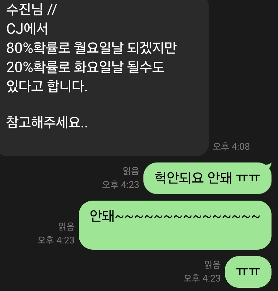 어쩔 수 없이 다시 이전 담당자님께 전화를 걸어 자초지종을 설명하니, 흔쾌히 도와주시겠다고 하시며 송장 번호를 요청하셨다.