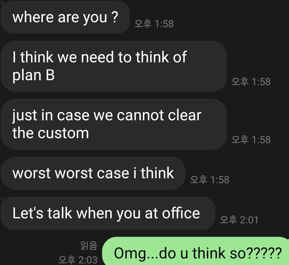 우리 현지 팀원들은 아는 사람의 아는 사람까지 끈을 찾아 세관 사람에게 연락해 읍소를 해보았으나, inspection에 들어갔기 때문에 도중에 꺼낼 수도 없다는 말만 들어야 했다.