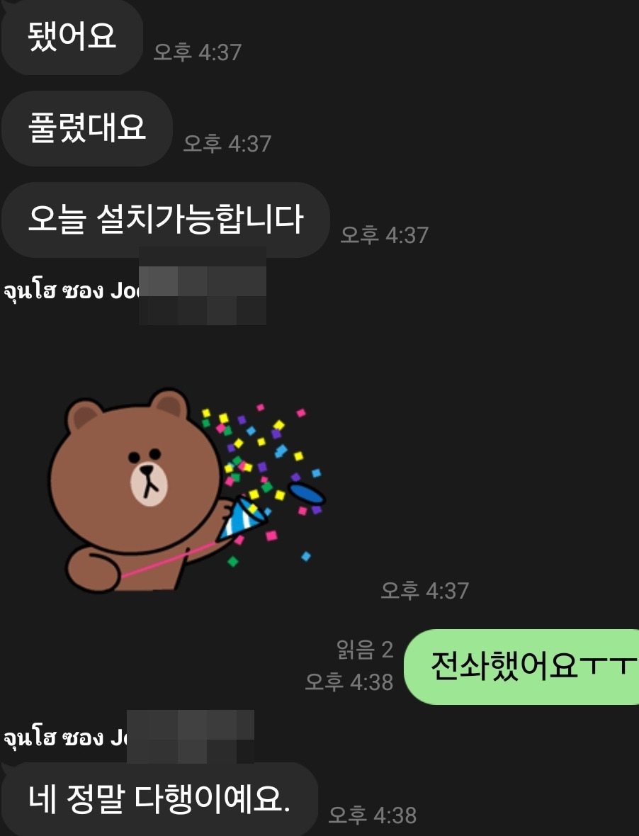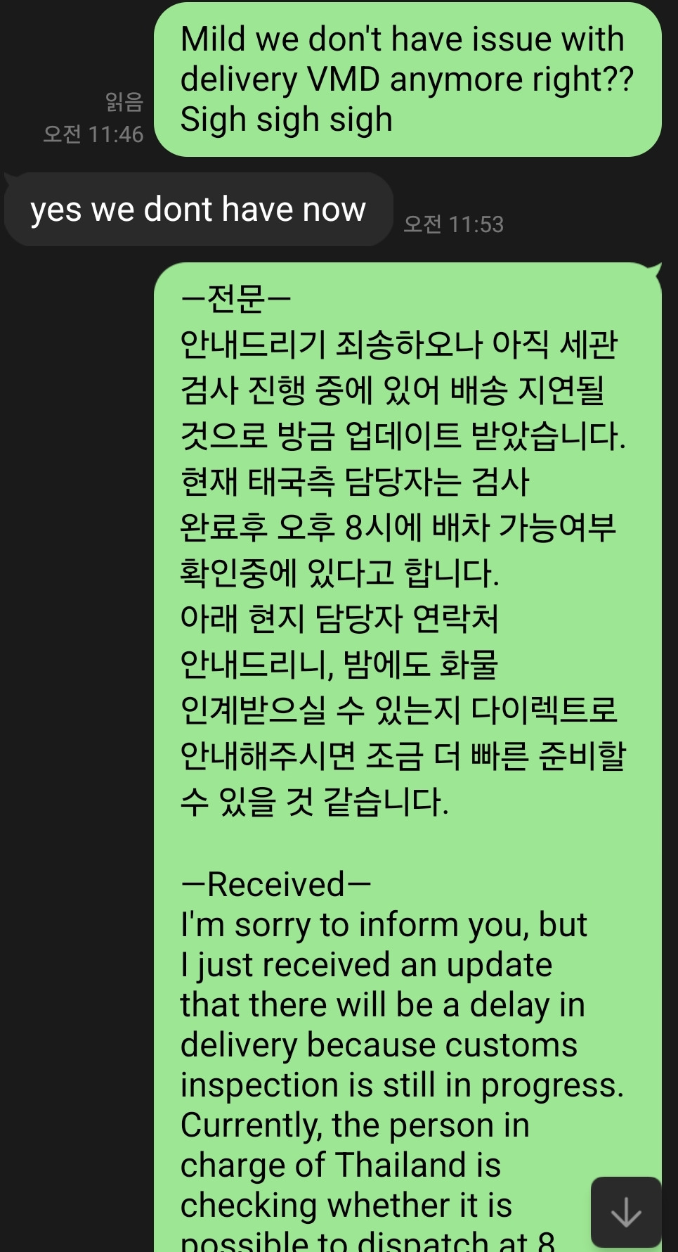 화요일 4시에 도착하기로 했던 통관은 화요일 아침 갑자기 또 지연이 된다고 연락이 왔다.