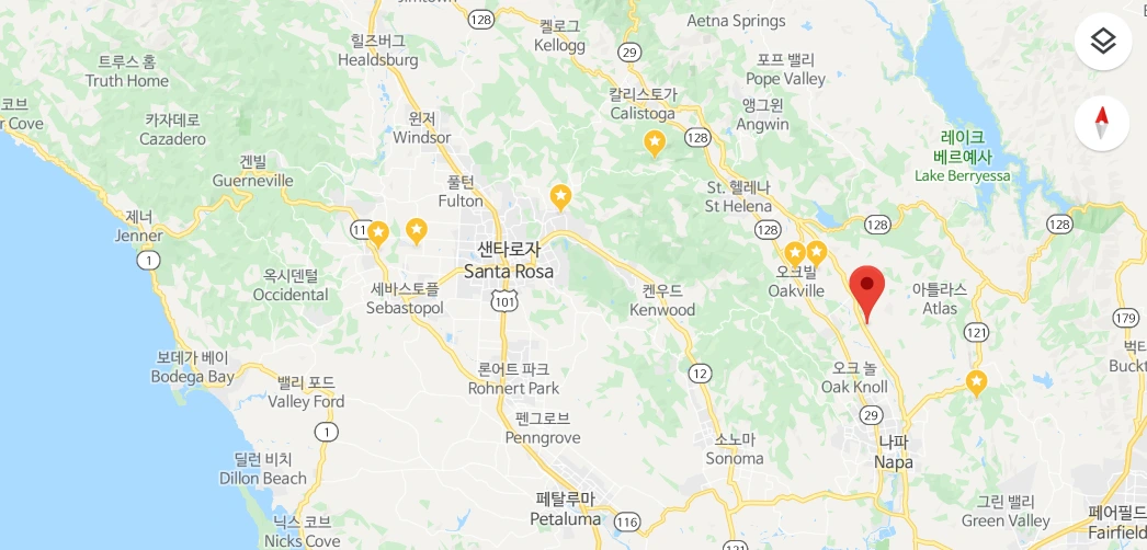 나파 밸리는 소노마 카운티보다 더 내륙에 위치해 있으며, 샌프란시스코에서 북동쪽으로 60km 떨어진 곳에 위치해 있다. 덕분에 샌프란시스코로 여행을 가는 사람들은 짧게는 당일치기로도 나파 밸리로 와인 투어를 떠난다. 나파 밸리에는 약 300곳 이상의 대형 와이너리들이 있다고 하니 어마어마한 생산지임에 틀림없다. 미국 와인의 아버지인 로버트 몬다비, 프랑스 LVMH 그룹이 세운 도멘 샹동 등도 모두 나파 밸리에 위치해 있다.