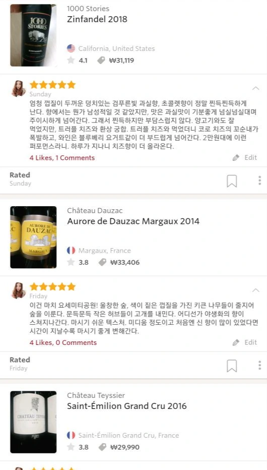 이러한 이유로, 와인을 이제 막 좋아하거나 관심을 갖게 된 사람들에게 무조건 개인 테이스팅 노트를 남기는 것을 권하고 싶다. 이유는 명확하다. 막연했던 나의 감상을 구체화하여, 나의 취향을 알아가기 위함이다.