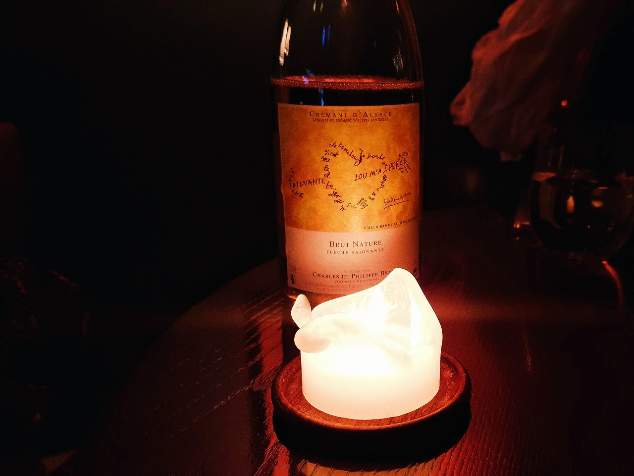 꿀 같은 황금빛 컬러와 큐피드 화살이 뚫고 지나간 하트 그림이 그려진 레이블이 인상적이다. 향에서는 자몽 주스, 그리고 피노 누아의 요거티한 뉘앙스가 느껴지며, 맛은 산미가 살아있고 오래된 샴페인에서 맡아본 꿀 향이 난다. 마지막에 다 마시고 난 뒤 잔에 남은 잔향에서는 아몬드 같은 너티한 느낌이 난다. 기포도 쭈욱 올라와서 정말 기분 좋게 마실 수 있는 크레망이었다. 특히 딜 오일을 뿌린 굴 그라탱과 함께 했는데, 환상적이었다.