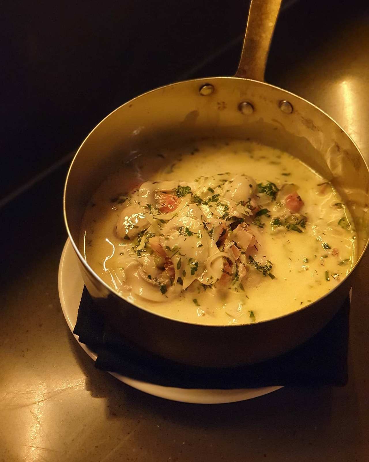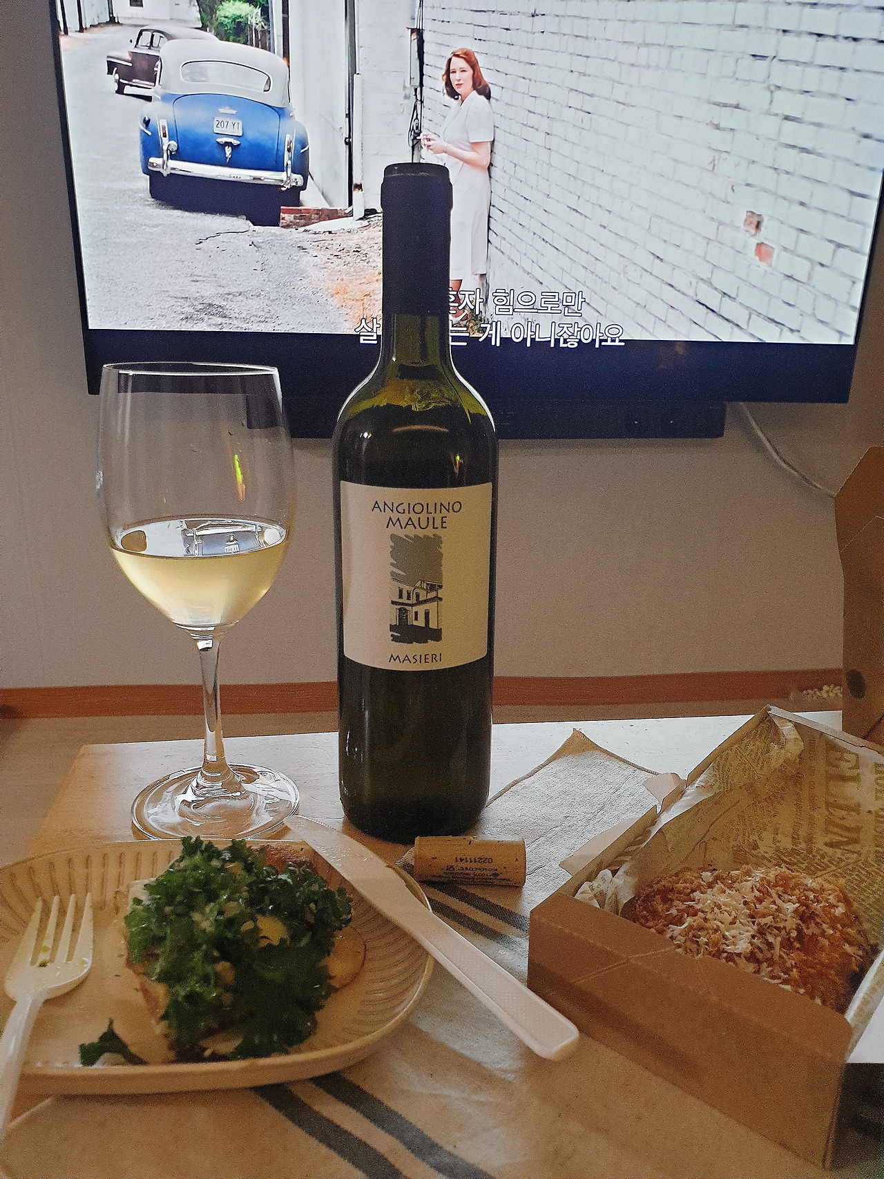 노랗고 탁한 컬러가 내추럴 와인임을 직감하게 한다. 발효된 사과초 느낌. 산미가 있고 중간중간 누룽지 사탕 같은 구수한 단 뉘앙스가 감돈다. 시간이 갈수록 내추럴 와인의 쿰쿰한 향과 사과초 같이 톡 쏘는 느낌이 무뎌지면서 더 맛있어진다. 내추럴 와인이지만, 앞서 얘기했던 마구간 같은 느낌이 들지 않아 마시기 좋았다. 레몬즙을 뿌린 라구 파스타와 특히 잘 어울렸다.