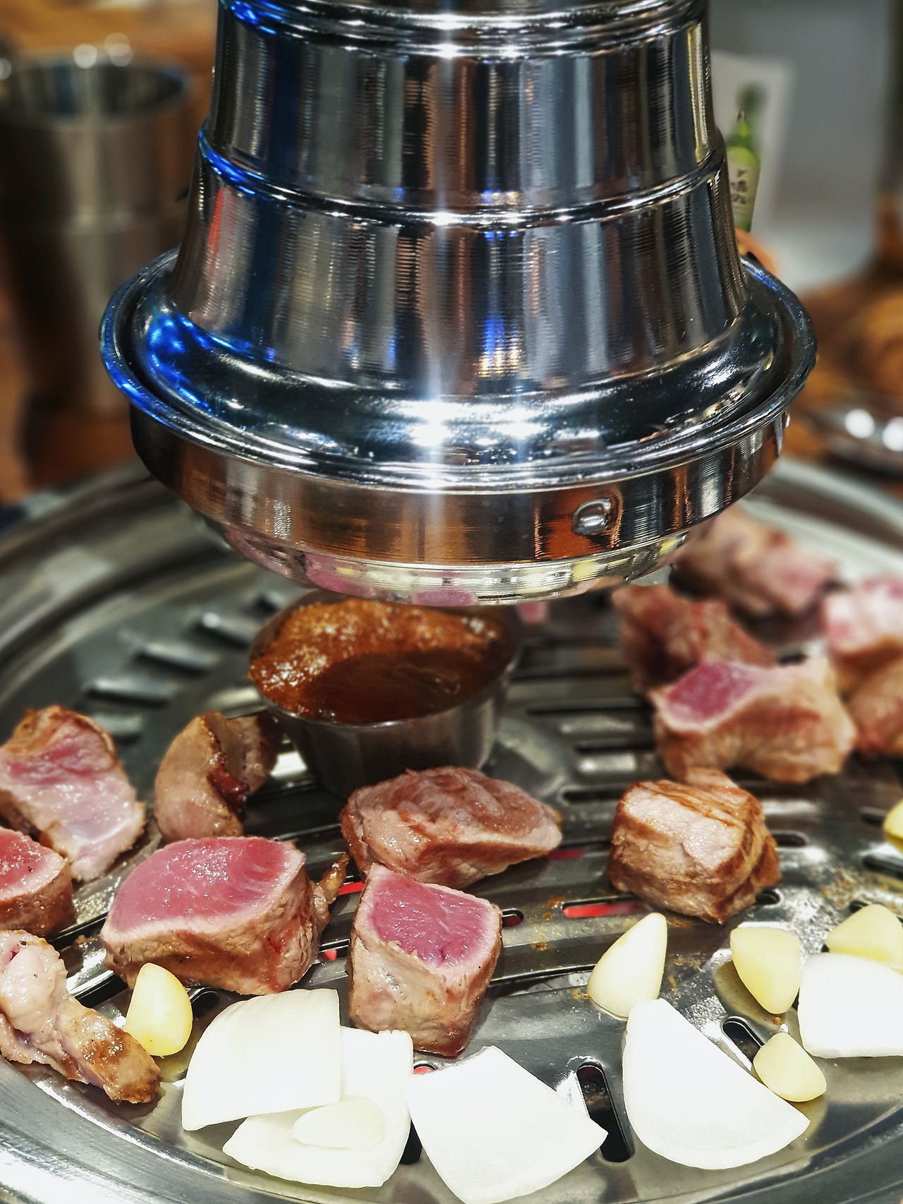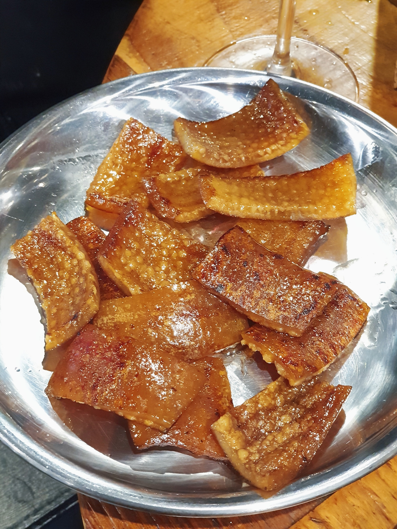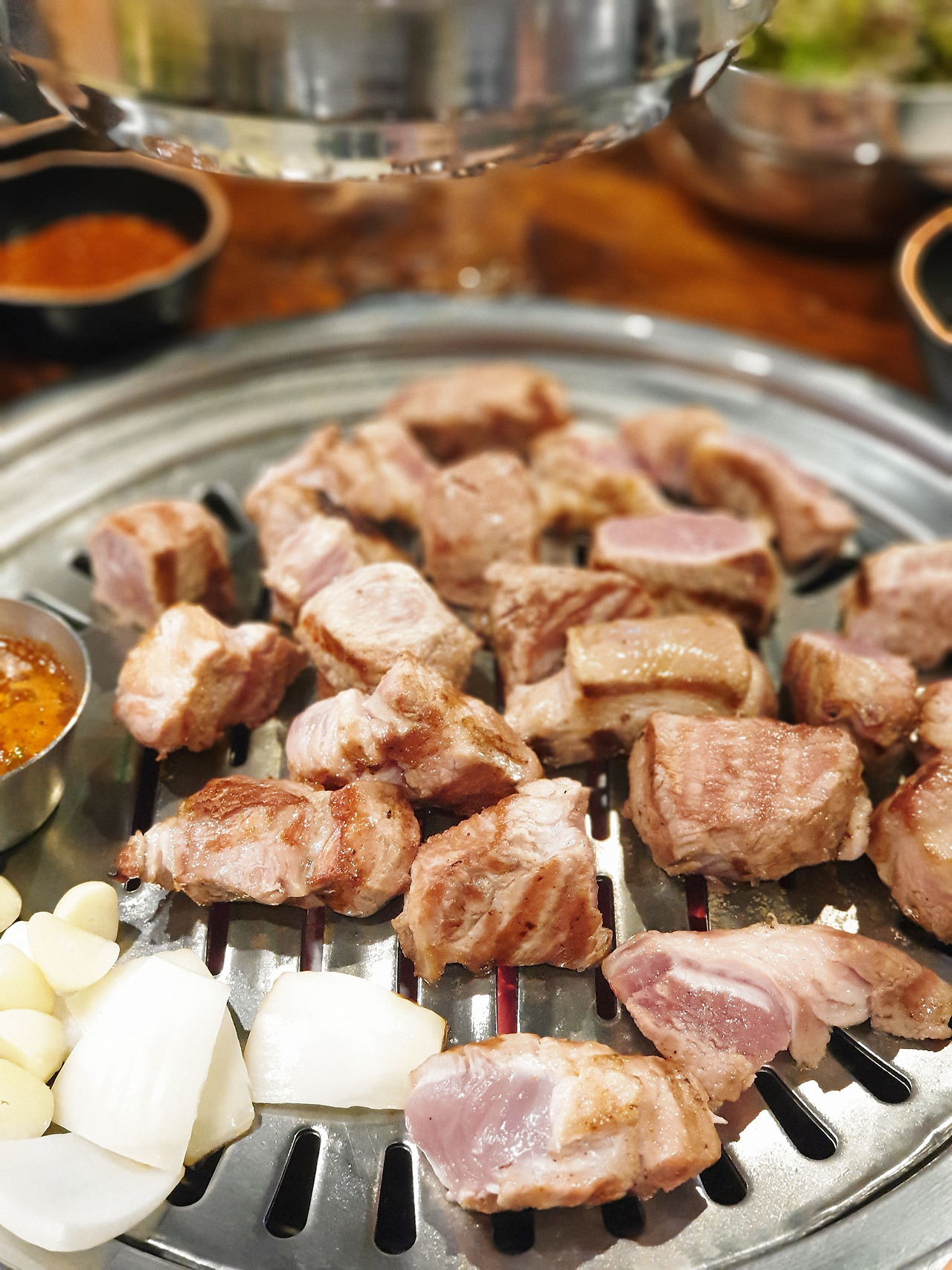 강남 이베리코 고깃집인 '까사 생갈비'에서 노하우를 쌓으신 분이 나와 차린 곳으로, 사장님이 직접 고기를 초벌해 주신다. 고깃집은 구워주는 사람마다 편차가 있을 때가 있는데, 이곳은 그 점에 강점이 있다. 특히 멜젓에 찍어먹는 목살과 계피향이 나는 돼지껍데기가 정말 맛있다. 와인은 병당 콜키지 1만 원이며, 업장의 와인을 시키면 콜키지 비용은 따로 받지 않는다.