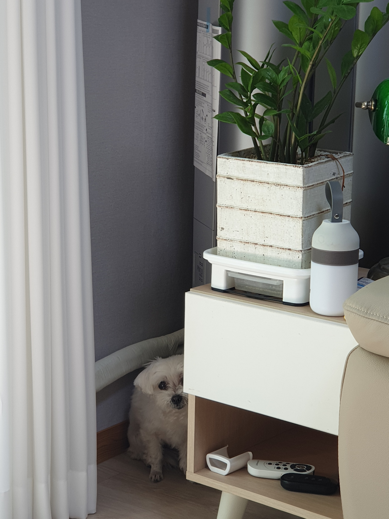 하지만 그럼에도 불구하고, 눈에 자꾸 걸리는 좋지 않은 포인트들이 있었다. 성격이 너-무나 무던하기 그지없는 둘째 콩이는 미용하다가 가위에 피부가 긁혀 피가 나도 가만히 있는 성격인데, 이상하게 밥 먹을 때와 잠을 잘 때는 엄청 예민하다는 것. 잘못해서, 혹은 고의적으로 건드리기만 해도 으르렁이 일상이었다. 첫째 별이는 소심하고 예민한데, 이상하게 산책만 나가면 초사이언이 되어서 우리를 마구 끌고 다닐 뿐 아니라, 이리저리 빠르게 돌고 도는 탓에, 우리가 거의 상모를 돌리는 수준으로 끈을 돌려야만 했다. 이런 이상한 면들에도 불구하고, 우리는 그냥 정말 별나다고만 생각하고 말았다.