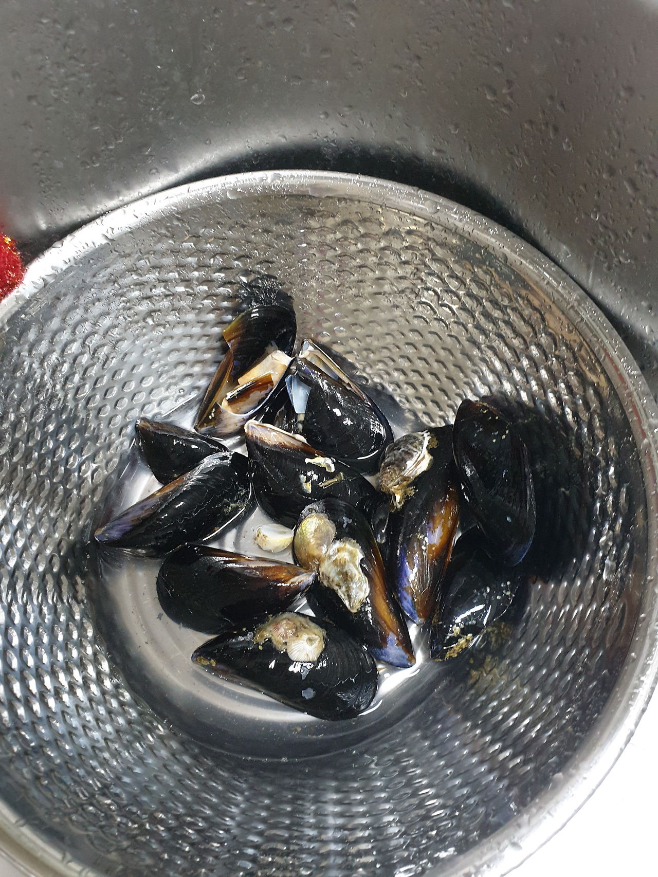 마지막으로 시간이 없거나, 마음의 여유가 부족하거나, 도움 주는 사람이 없을 때 절대로 건들면 안 되는 재료를 소개하고 마무리하려 한다. 지금까지 내가 만나본 식재료 중 최악의 빌런, 홍합이다(부들부들). 동죽, 바지락 등은 굵은소금 뿌려서 해감만 해주면 되는데, 홍합은 손질이라는 것을 해야 한다. 일단, 치실 같은 수염을 뜯어내야 하는데 힘이 만만치 않게 든다. 그러나 그보다도 더 힘든 것은, 홍합 껍데기에 붙어있는 다른 조개들(...) 홍합 두 개를 양 손에 쥐고 두 개를 부싯돌처럼 부딪혀서 떼내어줘야 하는데, 3천 원어치 홍합이 왜 이렇게 많게 느껴지는 건지.... 한 시간 반 동안 두 손이 부르트도록 손질해야만 했다. 물론 맛은 있었지만, 시간, 여유, 사람 이 세 가지가 無일 때는 홍합은 냉장고에 넣어두시라고 조언하며 글을 마무리한다.