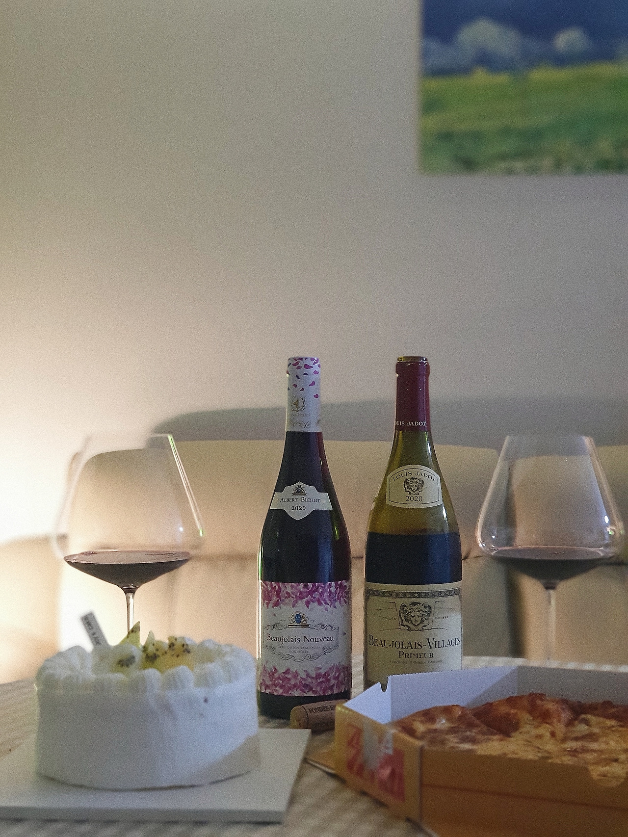 아무것도 올리지 않은 기본 치즈 피자와도 잘 어울리며, 보졸레 누보랑 같이 마시려고 직접 만든 생크림 케이크와 찰떡궁합이었다. 연성 치즈, 생크림 이런 몽글몽글한 음식과 잘 어울린다.