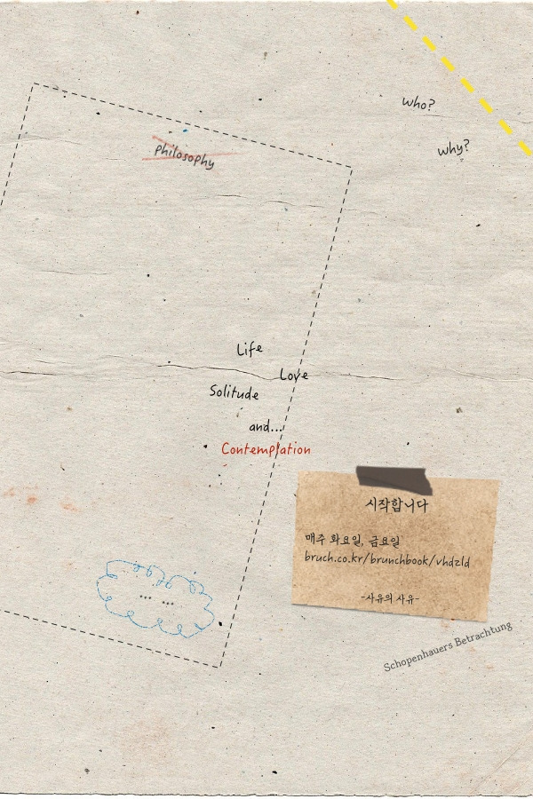 마지막으로 "소박하다"라는 말을 꺼내고 싶습니다. 말 그대로 소박한 시작이지만 "꾸밈이나 거짓이 없고 수수하다."라는 것을 강조하고 싶습니다. 지금만큼은 한 명의 철학가가 되어 책임을 갖고 진중하게 써 내려가겠습니다. 제가 쇼펜하우어의 사유에 깊은 감명을 받고 사유를 이어나가는 것처럼 ⎡사유의 사유⎦에 누군가의 사유가 이어지길 기대하며 이쯤에서 서문 마치겠습니다.