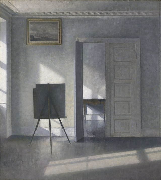 빌헬름 하메르스회이 (Vilhelm Hammershoi (1864. 5. 15 ~ 1927. 2. 13)의 그림을 처음 접했을 때, 부유하던 먼지들과 그늘 안에 고여 있던 기억이 의식의 수면 위로 떠올랐다.