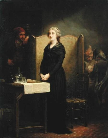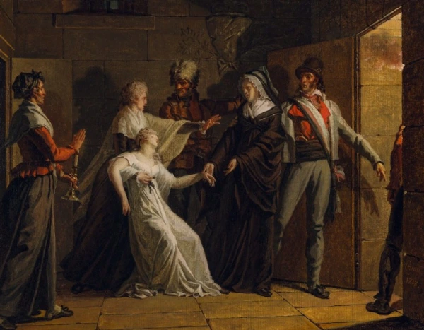 한편, 엘리자베트와 마리 테레즈는 왕비의 처형 소식을 아무도 알려주지 않았기 때문에 모르고 있었습니다. 엘리자베트는 옆에서 무서움에 떨고 있는 마리 테레즈를 위로해 주었죠. 그리고 떨어져 있는 루이 17세를 걱정하여 조카들의 처우를 개선해 달라고 요청하였으나, 이 또한 받아들여지지 않습니다. 사실, 로베스 피에르는 그녀가 왕위를 잇지 않는 여자이기도 하고 위험인물이 아니라 여겼기 때문에, 처음에는 프랑스에서 추방을 하는 것으로 결론을 지으려 하였으나, 곧 마음을 바꿔 처형을 하도록 결정합니다. 1794년 5월 9일 그녀는 콩시에르쥬리 감옥으로 이송되기 전, 자신의 조카딸을 꼭 안아주며 나는 꼭 돌아올 것이니 걱정하지 말라고 하였지만, 그것은 그들의 마지막 만남이 되었습니다.