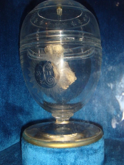 그래서 결국 대주교에게 심장을 바쳤죠. 하지만 대주교가 머무는 곳이 약탈당하는 일이 일어나자, 펠르탕의 아들이 루이 17세의 심장을 다시 가져다 수정 항아리에 넣어 보관하였습니다. (이 수정 항아리는 지금까지 루이 17세의 심장이 담긴 채로 보관되어 있습니다.)