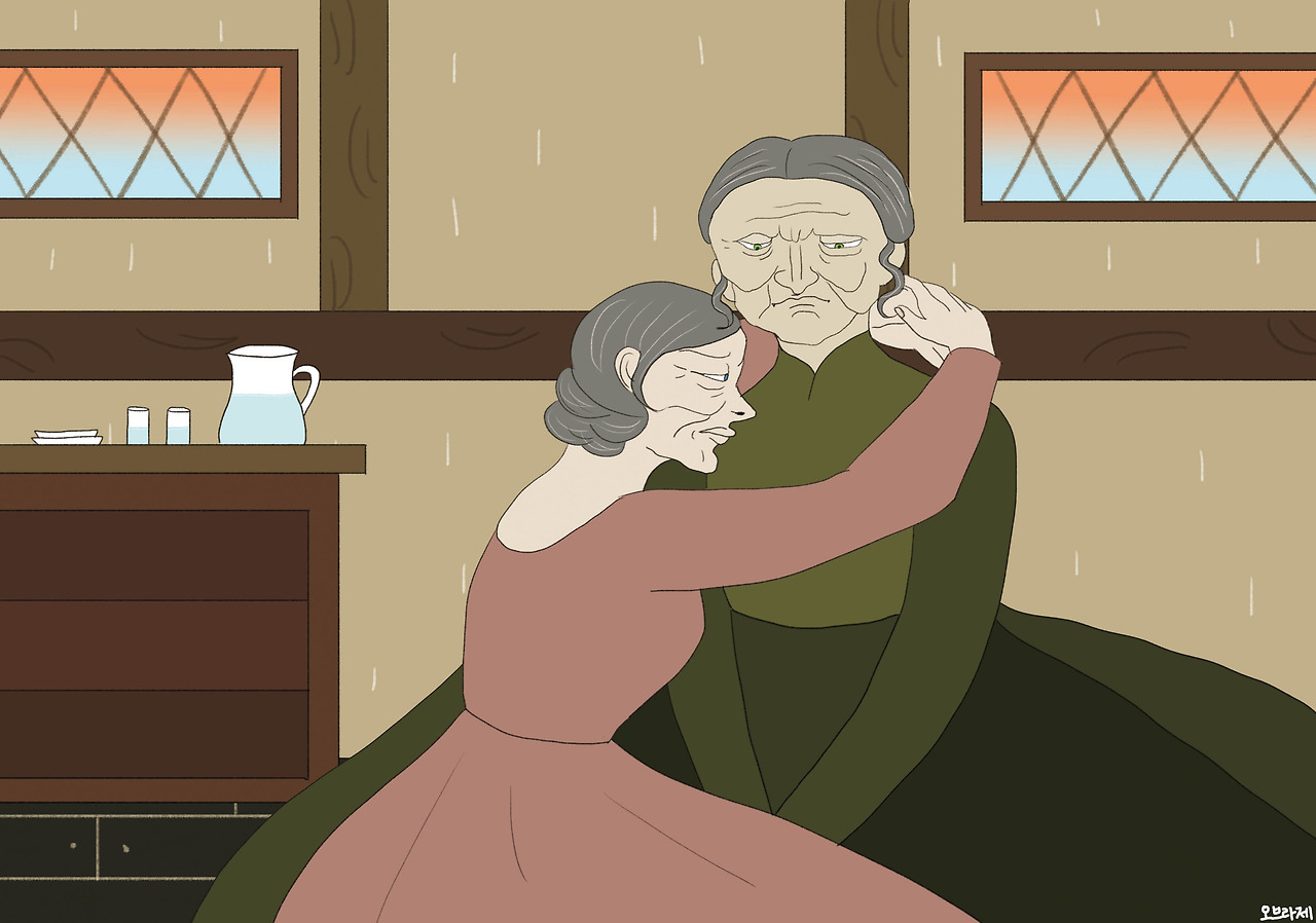중세 시대 어느 외딴 집에 두 노파가 살았습니다. 그들은 자매로, 우애가 매우 좋았죠. 자매는 삯바느질과 남의 집 청소 일을 하면서 생계를 이어나고 있었는데, 언니와 함께라면 가난한 생활이라도 즐거웠던 동생과 달리, 언니는 다 늙어 죽을 날이 얼마 남지 않은 상황에서도 자신이 원하는 부와 권력을 얻지 못하고 끝까지 가난에 벗어나지 못한 삶에 짜증이 나기만 했어요. 그런 언니를 본 동생은 “언니는 욕심이 너무 많아. 우리가 고아로 살면서 산전수전을 다 겪었는데, 그에 비에 이 정도의 삶은 정말 만족스러운 것 아니야?”라고 말했습니다. 언니는 그런 동생을 이해할 수 없었습니다. “똑같은 시대에 태어나 차별과 편견이 심한 같은 여자로 태어났는데도 누구는 부모 잘 만나고 남편 잘 만나서 평생 돈 걱정 없이 펑펑 쓰면서 살고 누구는 끝내 가난에서 벗어나지 못하고 이런 시궁창에서 살고 있지.”라면서 불만을 토해냈습니다. 그녀는 자신을 뒷받침해줄 부모도 없었고, 얼굴이 예쁘지도, 아니 정확히는 못생긴 편에 속했기 때문의 귀족이나 왕족의 정부로 들어가지도 못한 이런 삶에 회의감을 느꼈습니다.