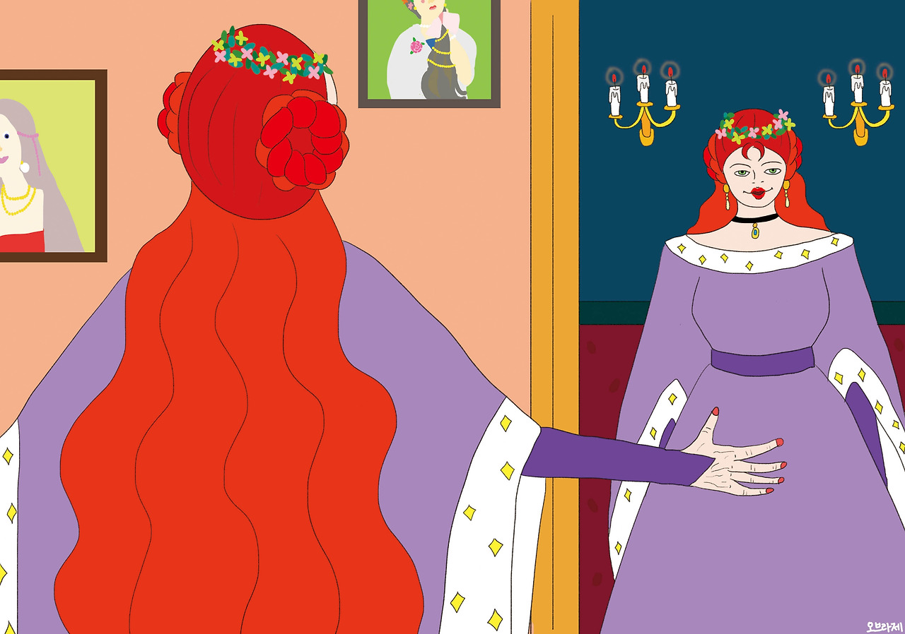 언니는 찜찜했지만 그것은 나중 일이고 지금 예쁜 처녀가 되면 왕의 마음을 사로잡을 수 있다는 생각에 늙은 여인의 말을 수용했습니다.