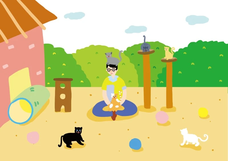 그런데, 이상하게 집에 고양이들이 하나, 둘 보이기 시작을 하게되고... 처음에는 고양이에게 관심조차 없던 사쿠모토는 점점 고양이들이 신경쓰이게 되면서 자신도 모르게 마당에는 고양이 용품이 가득해집니다.