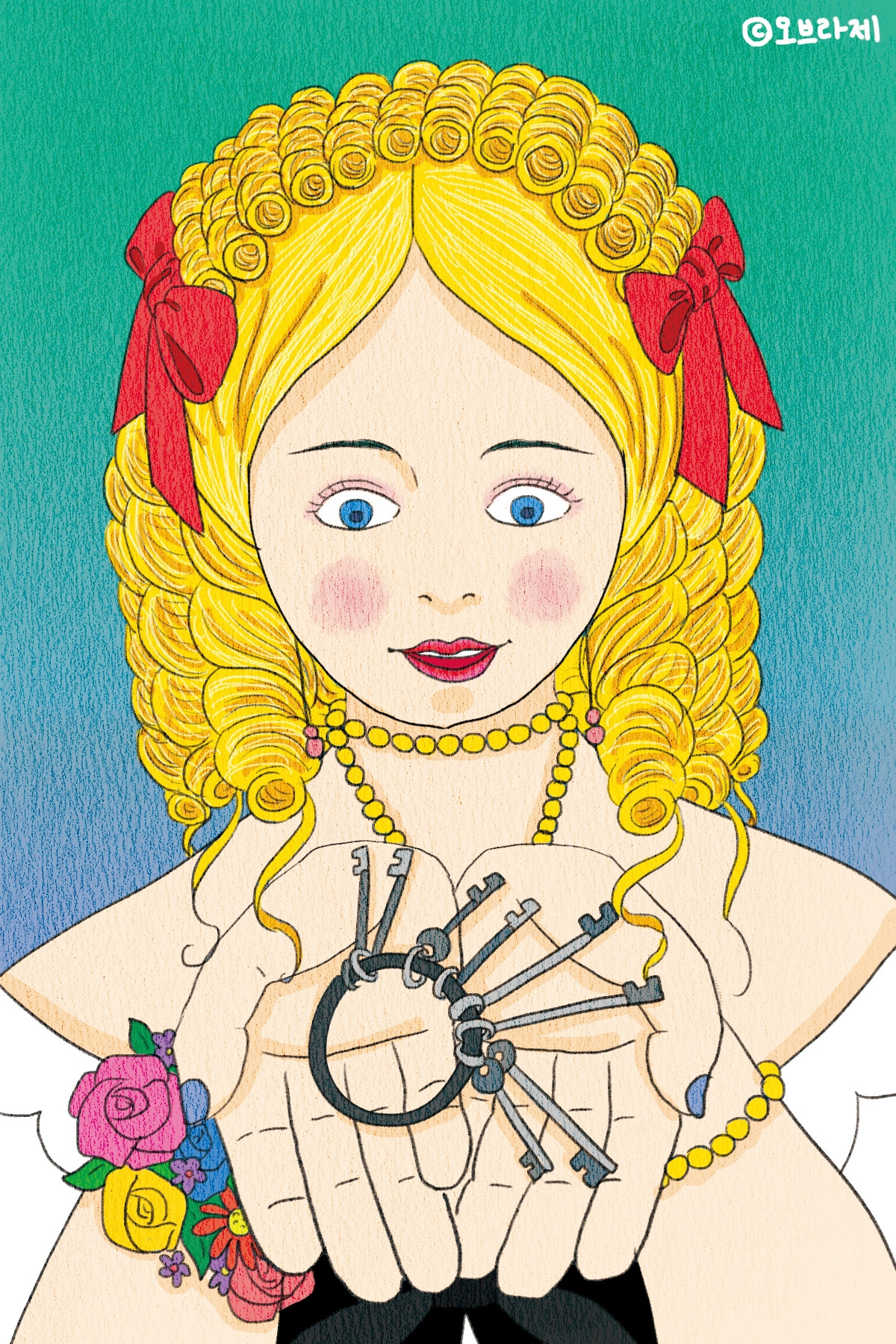 푸른 수염은 여행을 떠나기 전, 열쇠 꾸러미를 자신보다 한참 어린 아내에게 주며 말했습니다.