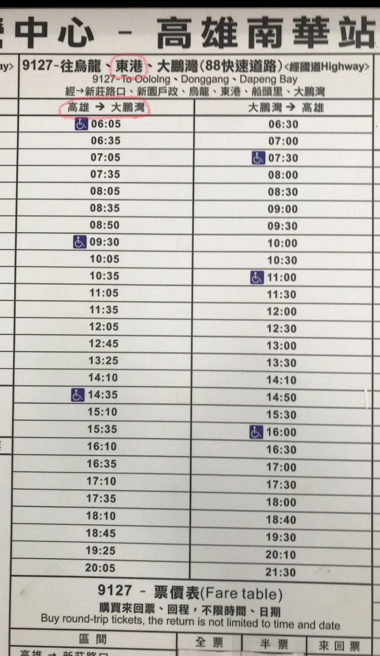 [가오슝 버스터미널 -> 동강 버스터미널]