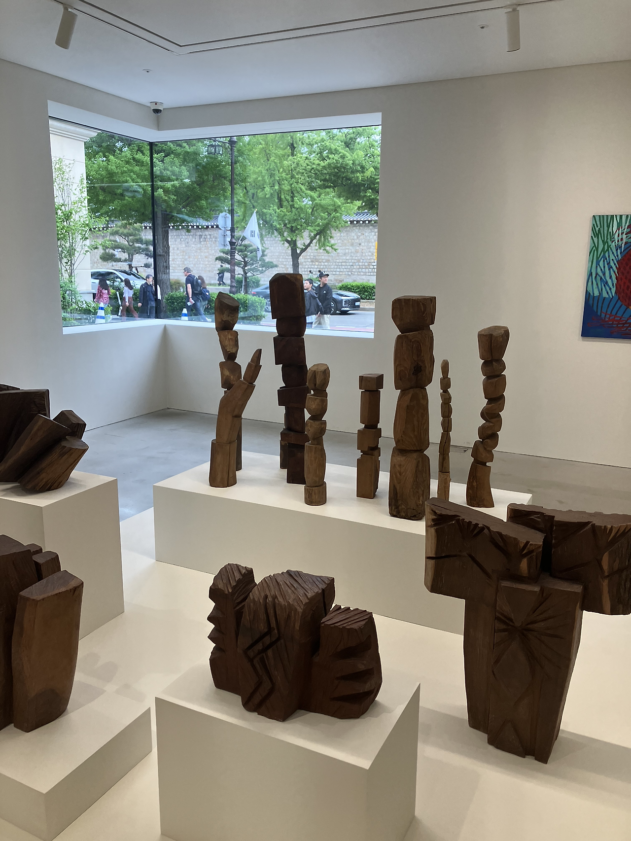 국제갤러리 후광에 RM도 다녀간 김윤신 전이라 하여 부랴부랴 다녀왔는데, 미리 보고 간 추상화보다 목재 작품이 더 기억에 남았다.