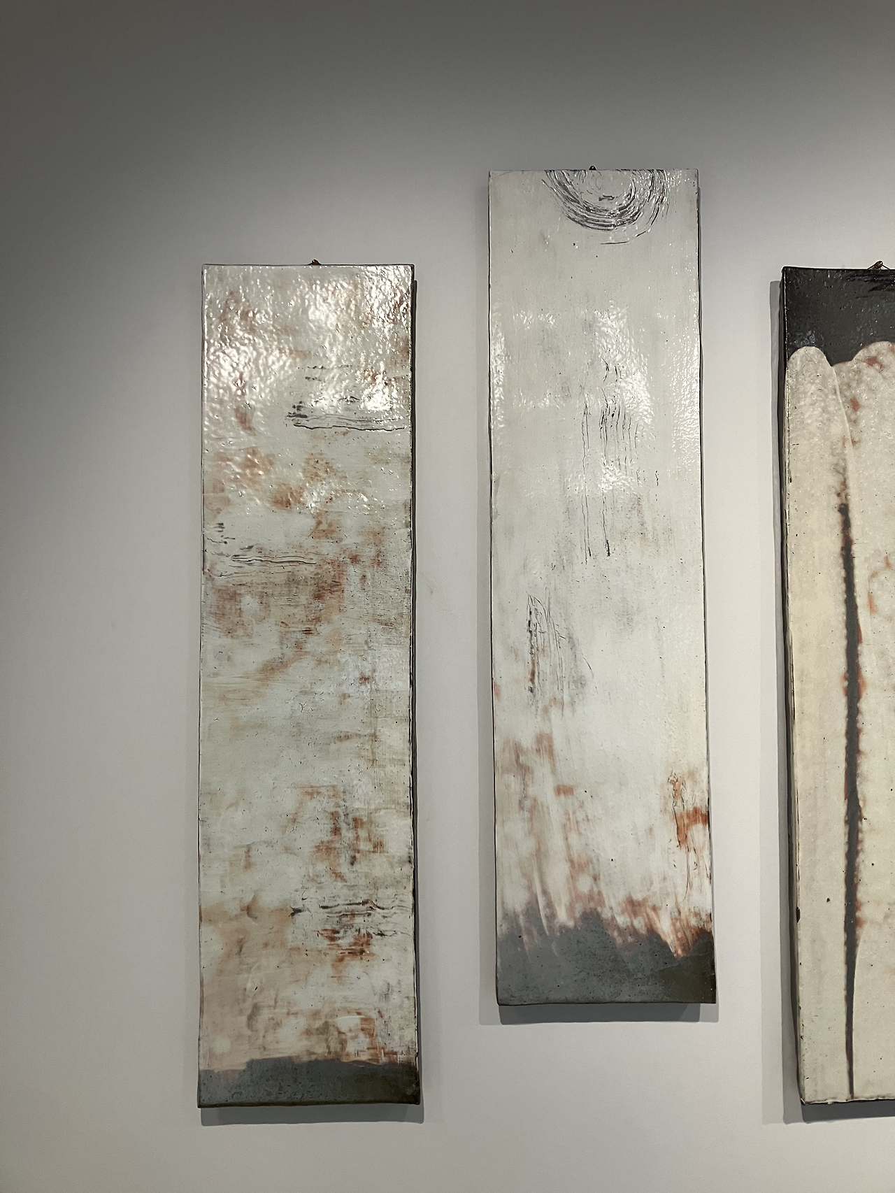 분청사기는 회청색 바탕흙 위에 백토로 분장 후