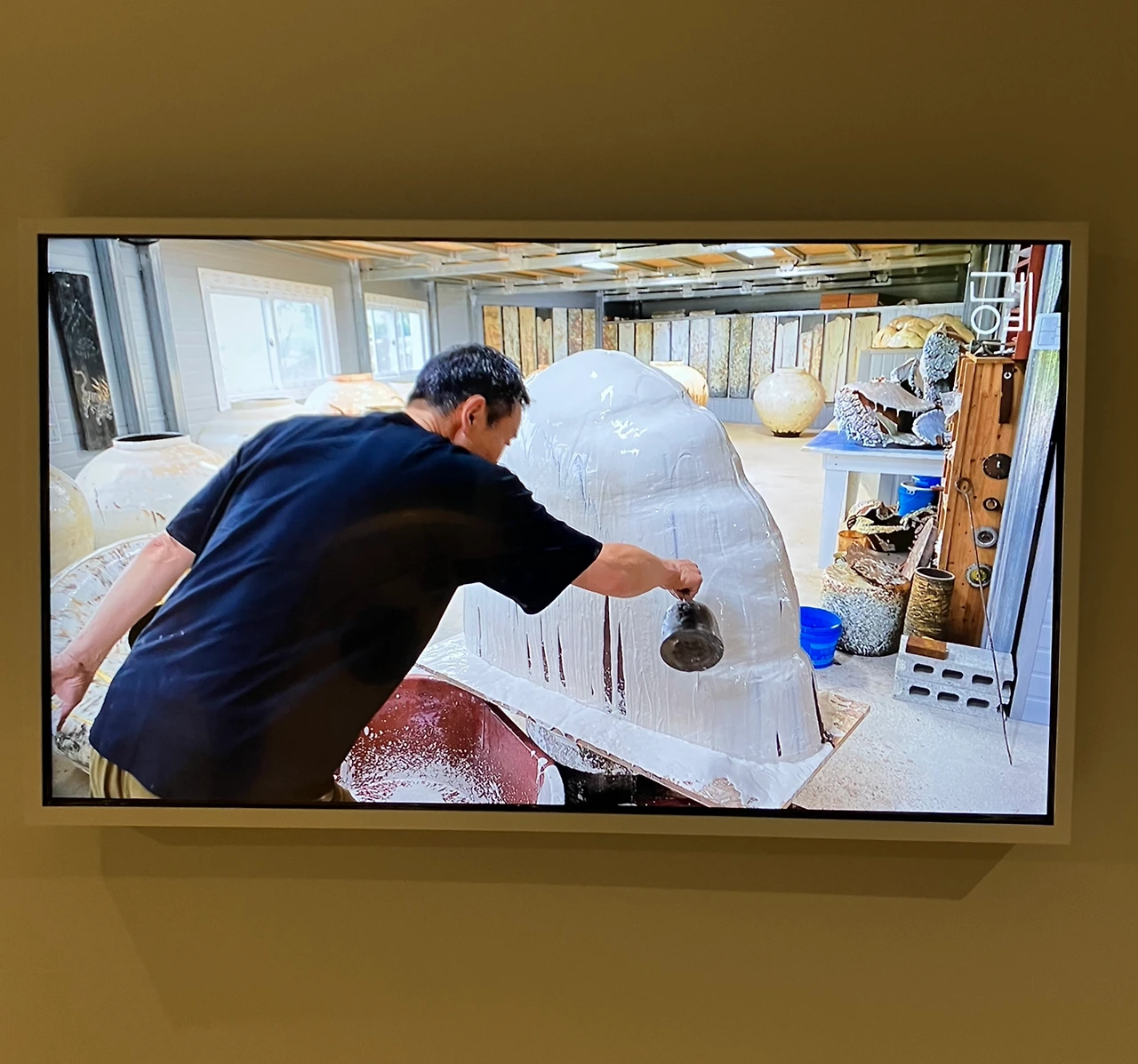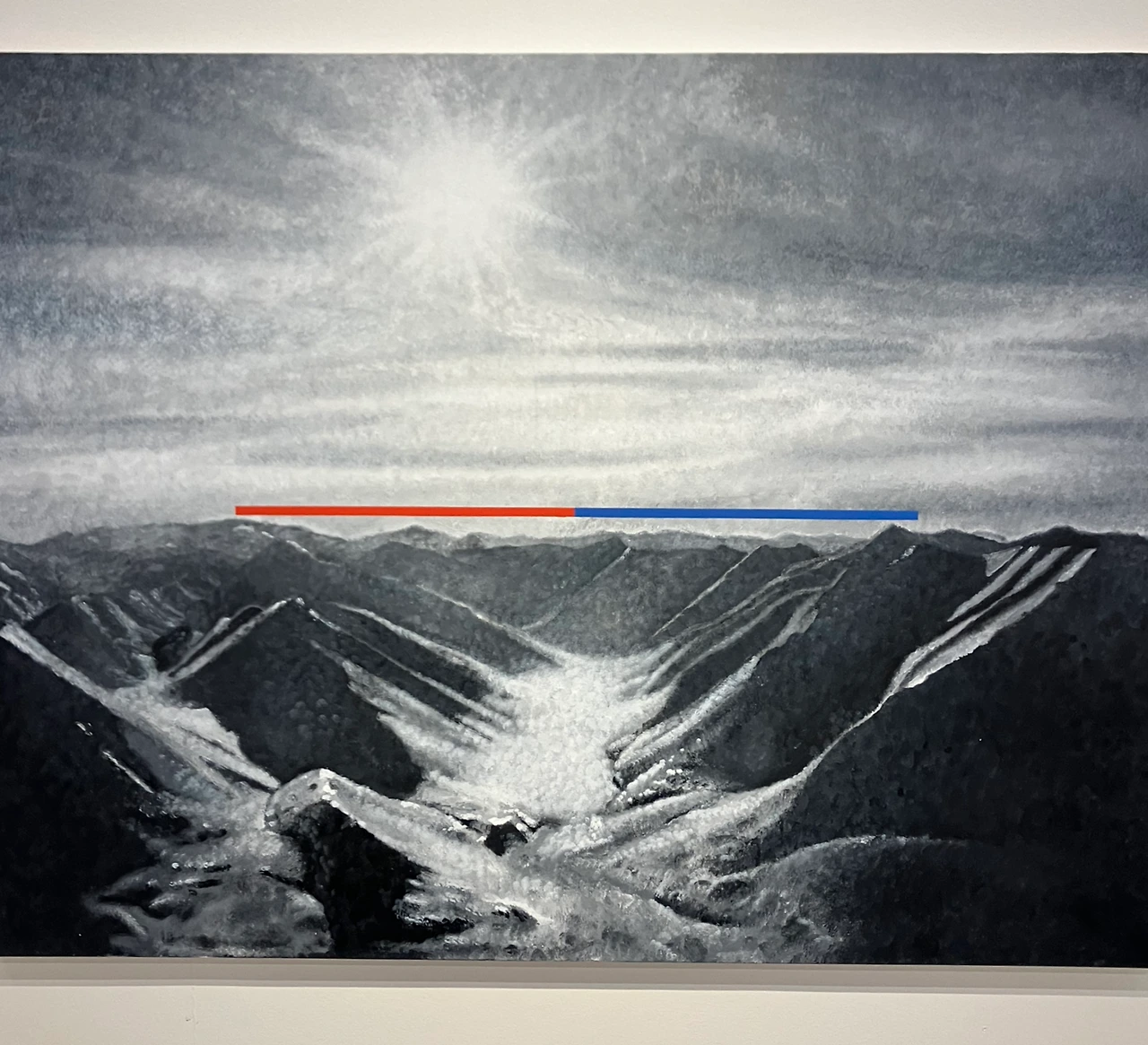 작업 방법이 참 흥미로웠다. 붓으로 그린 것인가 했는데, 주전자에 물감?을 담아 위에서 살짝 뿌리는 형식으로 자연을 표현한다. 직접 그리지 않고 자연스럽게 흘러내린 모습이, 그 자체로 자연을 담고 있다.